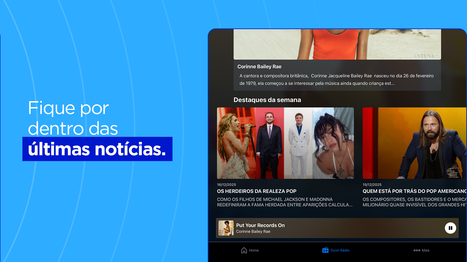 With more than 5 million listeners in Brasil, radio Antena 1 now brings the worlds best music onto your mobile.