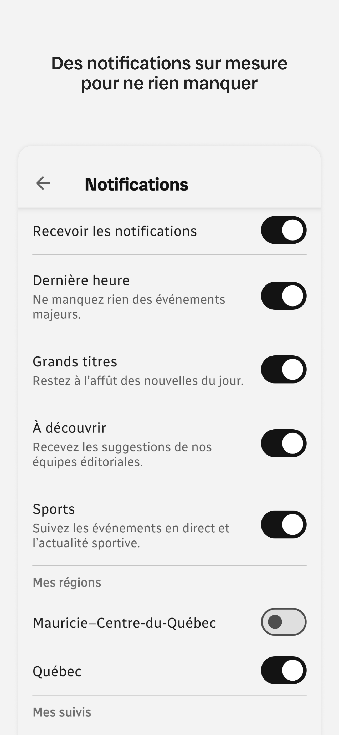 • Activez les notifications selon votre région et vos intérêts, pour ne rien manquer de ce qui compte pour vous.