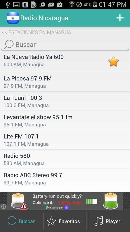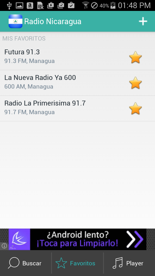 Radio Nicaragua (Package Name: radios.de.nicaragua) is developed by Descargalo Gratis and the latest version of Radio Nicaragua 4.1 was updated on May 19, 2021. Radio Nicaragua is in the category of Music & Audio. You can check all apps from the developer of Radio Nicaragua and find 68 alternative apps to Radio Nicaragua on Android. Currently this app is for free. This app can be downloaded on Android 4.1+ on APKFab or Google Play. All APK/XAPK files on APKFab.com are original and 100% safe with fast download.