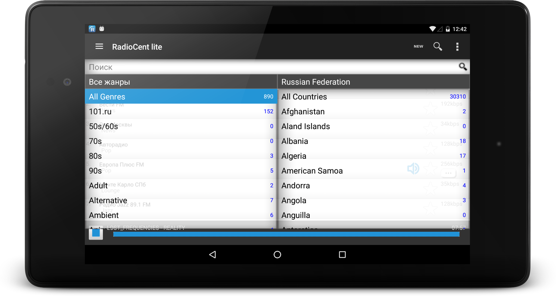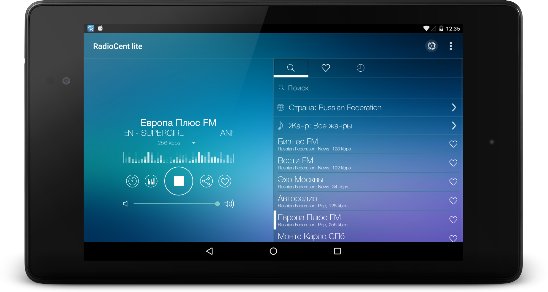 All radio stations from each corner of the world categorized by genres and countries. No ADS application. We develop this app from 2010 for Windows, Android and iOS Visit our website radiocent.ru for more info!
