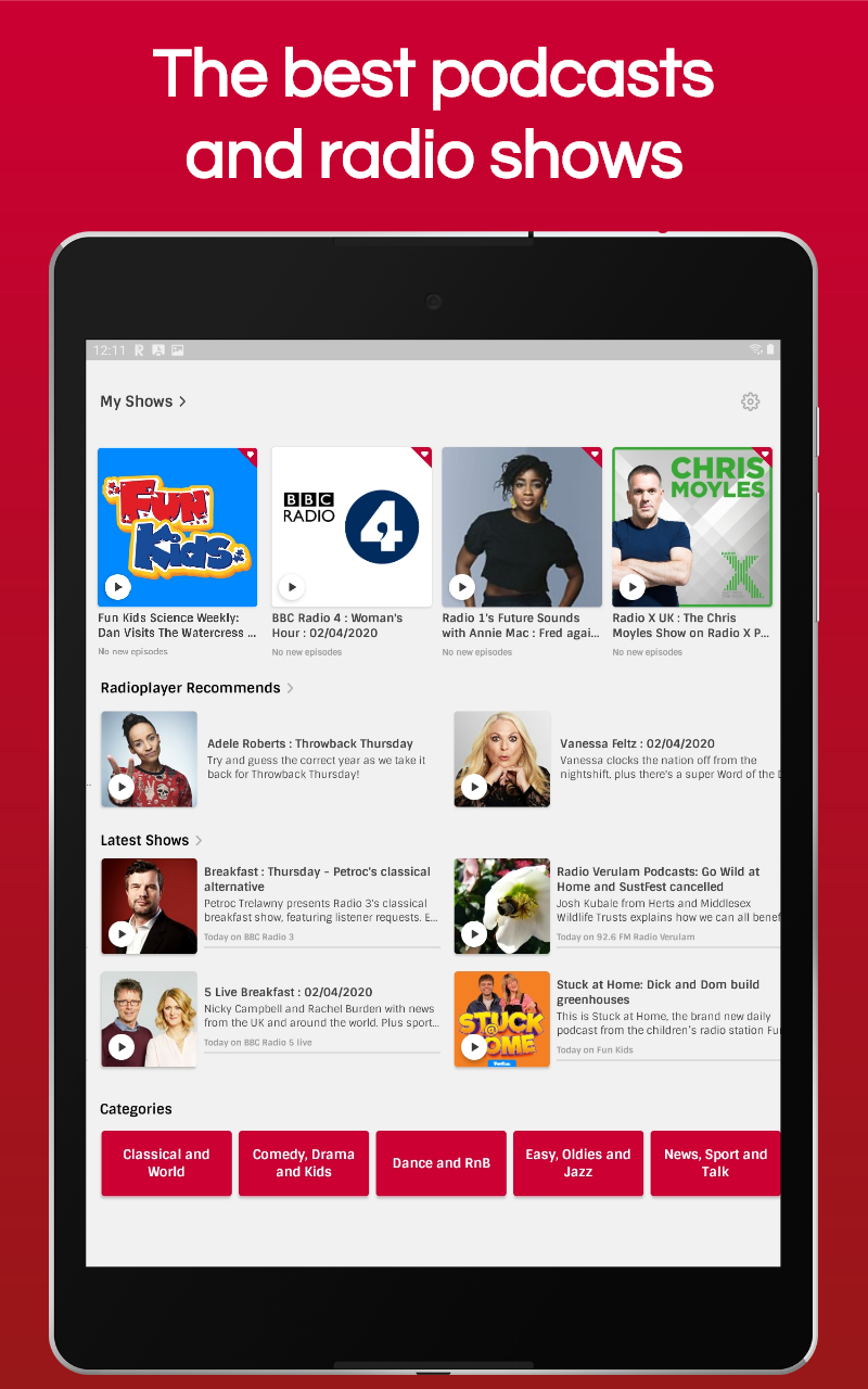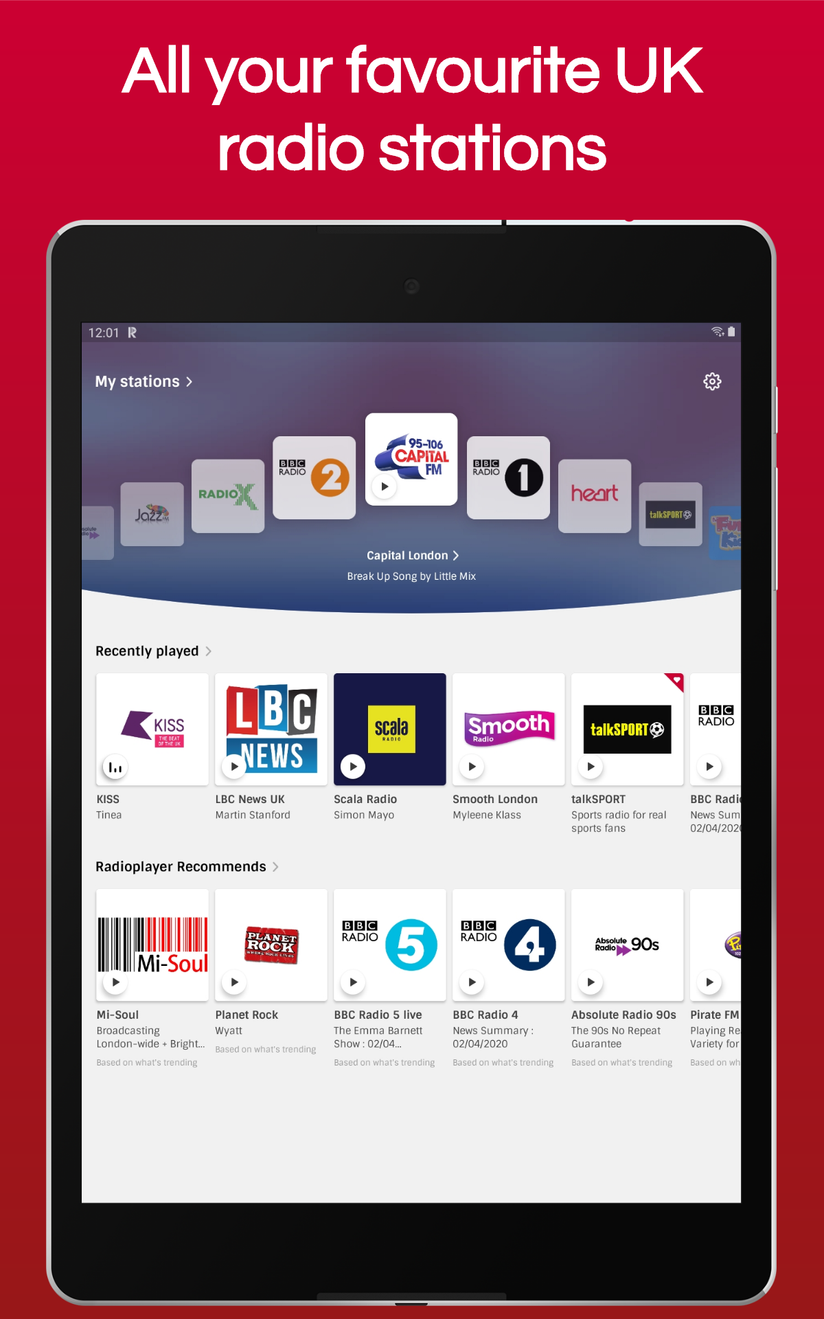 This radio app has everything from news and sport - to pop, rock, indie, dance, jazz, soul, and classical. It's perfect for live Premier League football, Ashes cricket, Wimbledon tennis, F1 at the weekend, Festivals over the summer, and Christmas radio stations.