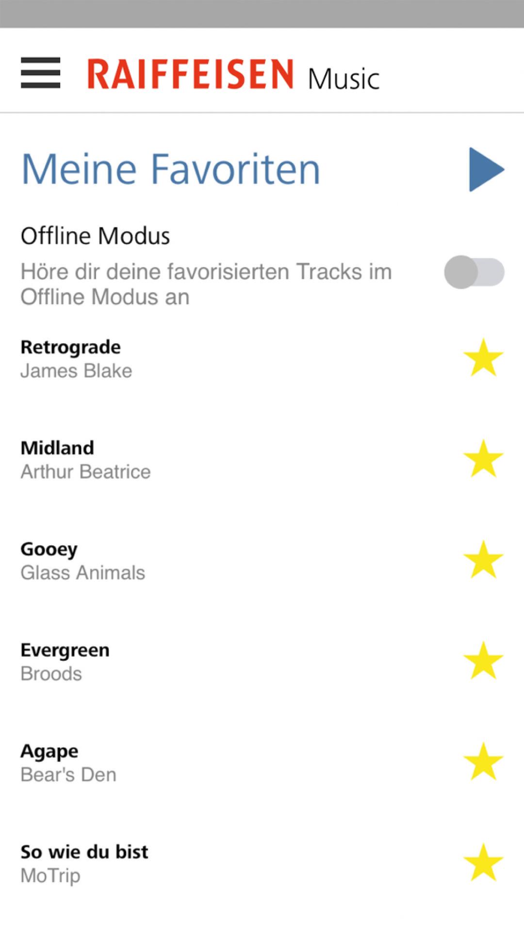 Ob über Smartphone oder Tablet – Raiffeisen Music bietet dir eine Vielzahl von Music-Channels sowie aktuelle Alben von internationalen Superstars und Newcomern. Und mit deinen Top 20 favorisierten Tracks hast du deine Lieblingsmusik immer dabei, auch wenn du offline bist. Mit den News und Wettbewerben bist du noch näher an den Stars und weisst schon heute, was morgen angesagt sein wird. Egal ob du gerade am Lernen bist, dich entspannst oder Sport treibst: Mit insgesamt 20 unterschiedlichen Genre- und Stimmungs-Music-Channels findest du jederzeit die passende Musik dazu – und das Ganze ohne Werbeunterbrechungen. Zusätzlich zum Musik hören, beinhaltet die Raiffeisen Music App auch topaktuelle News rund ums Thema Musik und laufend neue und spannende Wettbewerbe mit exklusiven Preisen. In Zusammenarbeit mit Universal Music bietet dir der Raiffeisen Music Player folgende Vorteile: • Music-Channels sowie aktuelle Alben von internationalen Superstars und Newcomern • Genre- und Stimmungs-Playlists Charts, Pop, Hip-Hop oder doch lieber Metal? Entdecke deine Lieblingsmusikrichtung oder finde einen Music-Channel, passend zu deiner Stimmung. • Suche in der App nach deinem Lieblingskünstler und spiele sie direkt ab • Eigene Musik-Playlist erstellen: Kreiere deine eigene Playlist mit deinen 20 Lieblingstiteln und höre sie nach deiner Wahl, wann immer du möchtest, auch offline. • Zugriff auf die Musik mit unlimitierter Skip-Funktion • Keine Werbeunterbrechungen • Topaktuelle Music News • Wettbewerbe und Erlebnisse: Gewinne Tickets, Backstage-Pässe oder mit etwas Glück gar ein Meet & Greet mit deinem Lieblingsmusiker. Die Raiffeisen Music App bietet dir folgende Music-Channels: • Artist of the week – jede Woche die erfolgreichsten Releases und topaktuelle Chartstürmer entdecken Genres: • Pop • Rap/Hip-Hop • R’n’B • Dance/Electro • Rock & Punk • Swiss Music • Musical & Soundtrack • Metal & Hardcore • Indie • Latino & Reggae Stimmungs-Playlists: • Workout • Weekend & Party • Love & Romance • Discover • Chill • Charts • Fussball/Schneesport • Festivals • Musik zum Lernen • Sommer/Herbst/Winter/Frühling Die Raiffeisen Music App ist in Deutsch, Französisch und Italienisch verfügbar. Nutzungsvoraussetzung: die Raiffeisen Music App ist für Jugendkunden von Raiffeisen, welche ein kostenloses Jugendkonto haben sowie eine kostenlose Raiffeisen Debit- oder Kreditkarte besitzen. Datenschutzerklärung Rechtlicher Hinweis: Wir weisen Sie darauf hin, dass durch das Herunterladen, die Installation und die Verwendung diese Applikation Dritte auf eine bestehende, ehemalige oder zukünftige Kundenbeziehung zwischen Ihnen und Raiffeisen schliessen können. Mit dem Herunterladen dieser App erklären Sie sich ausdrücklich einverstanden, dass die von Ihnen an die Dritten übermittelten Daten gemäss deren Bedingungen gesammelt, transferiert, bearbeitet und zugänglich gemacht werden können. Die Bedingungen dieser Dritten, denen Sie zustimmen, müssen von den restlichen Bedingungen von Raiffeisen unterschieden werden.