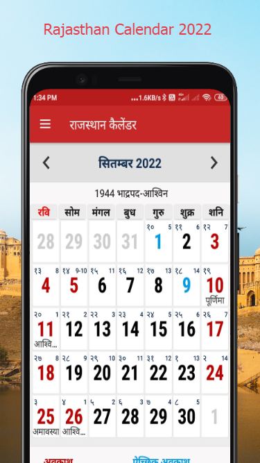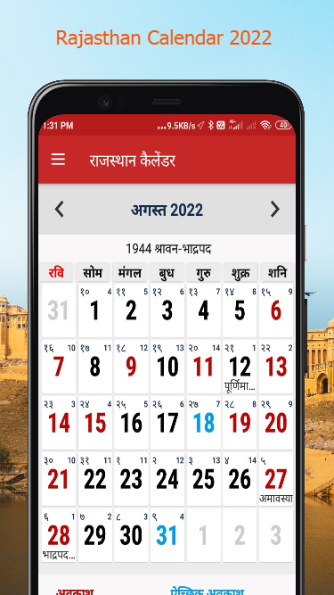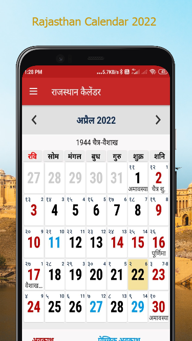 Rajasthan Calendar 2022