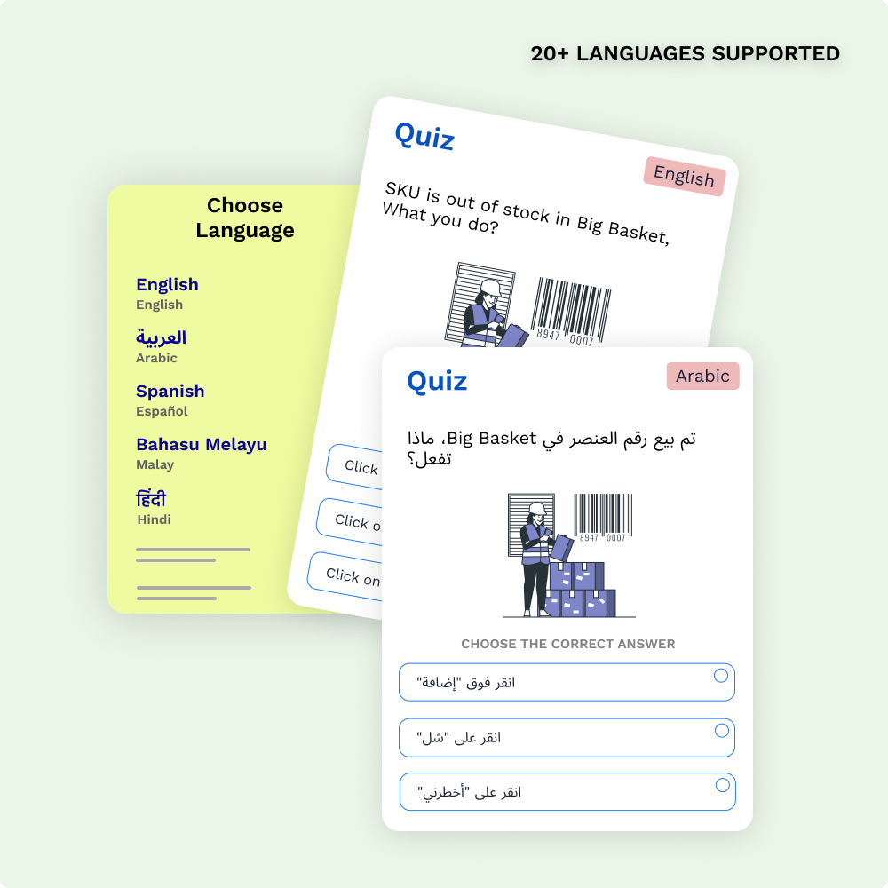 • Reduce errors, compliance issues, and operational delays through continuous reinforcement of critical knowledge and real workplace scenarios.