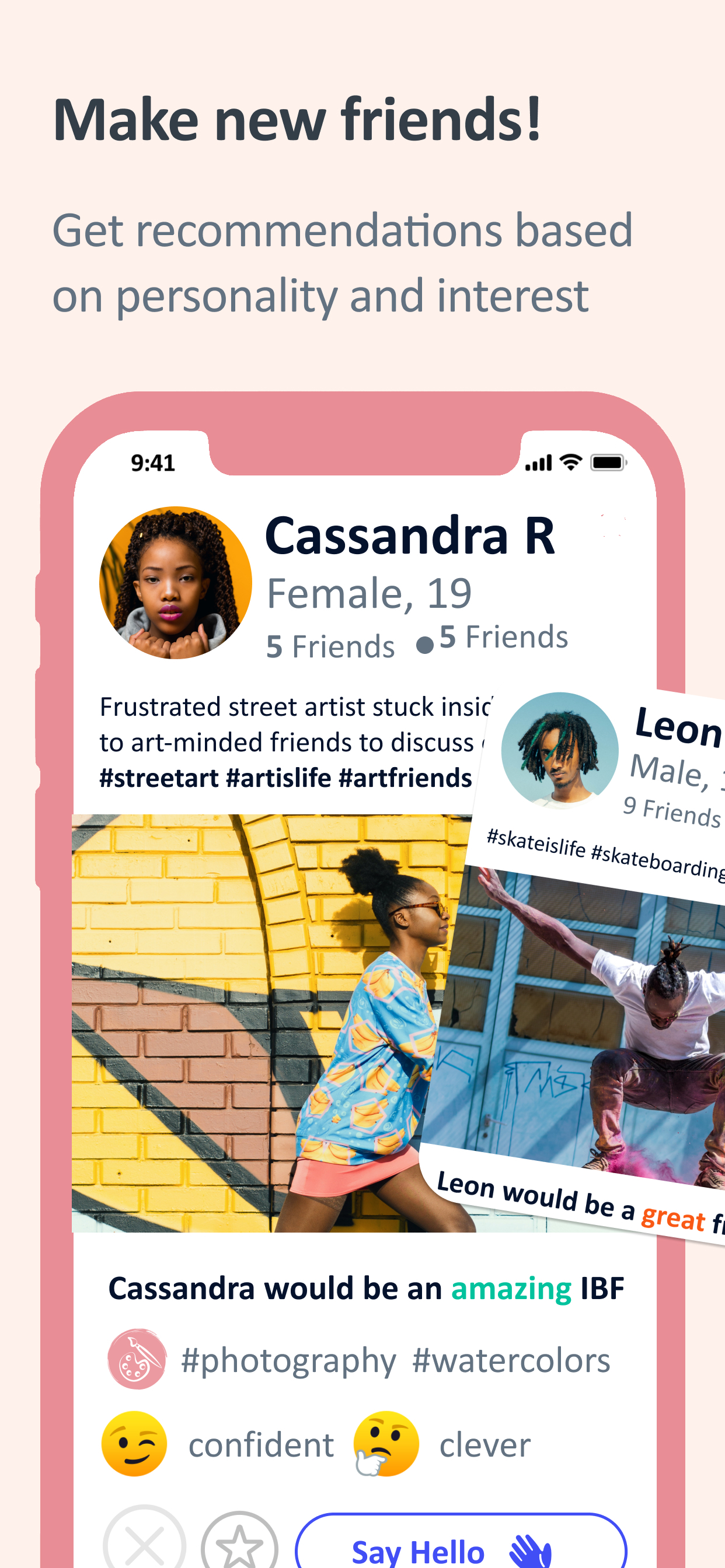 Reach recommends the best new friends for you based on your personality and interests. Don’t trip if you only have a few interests, though -- your whole profile counts!