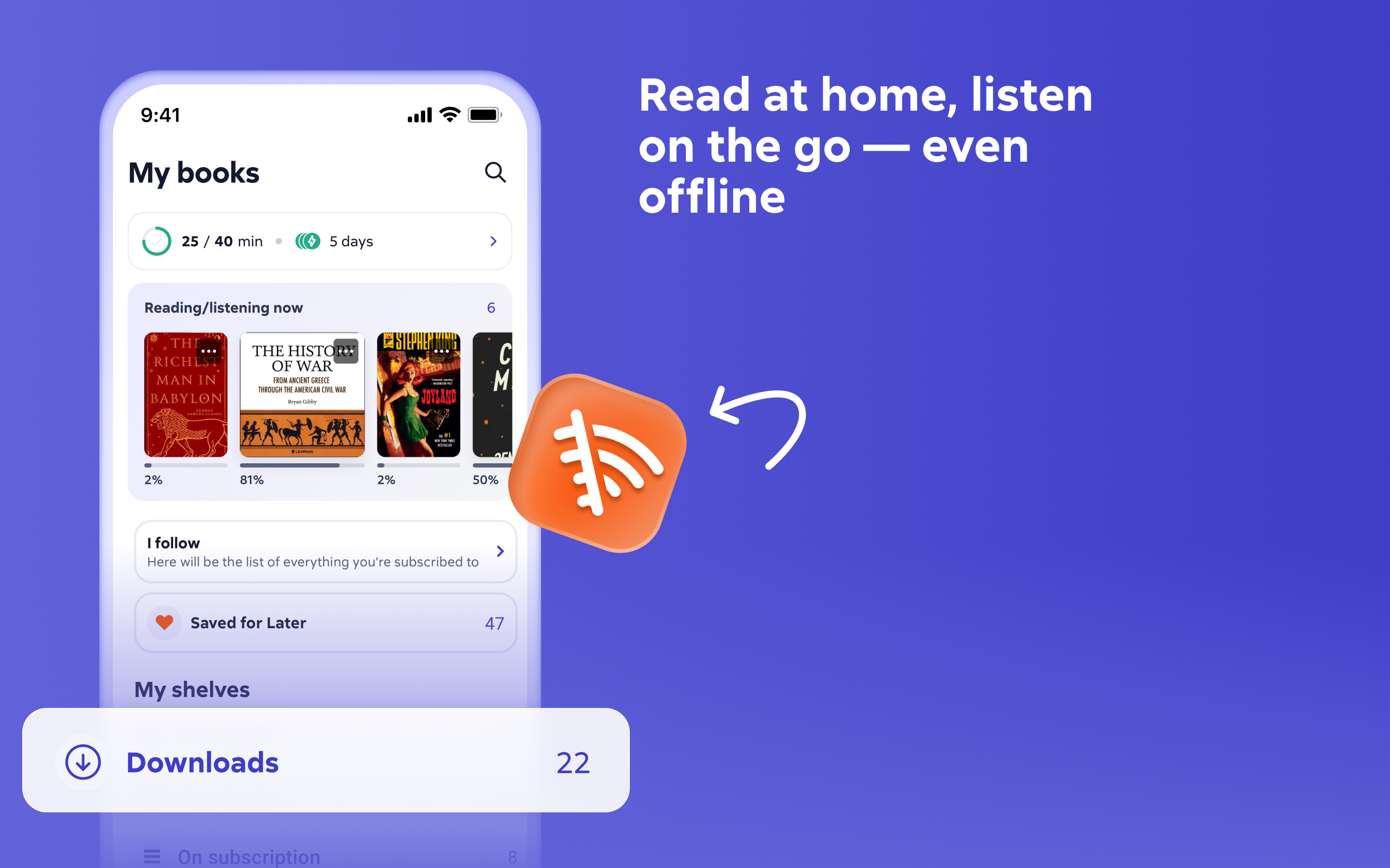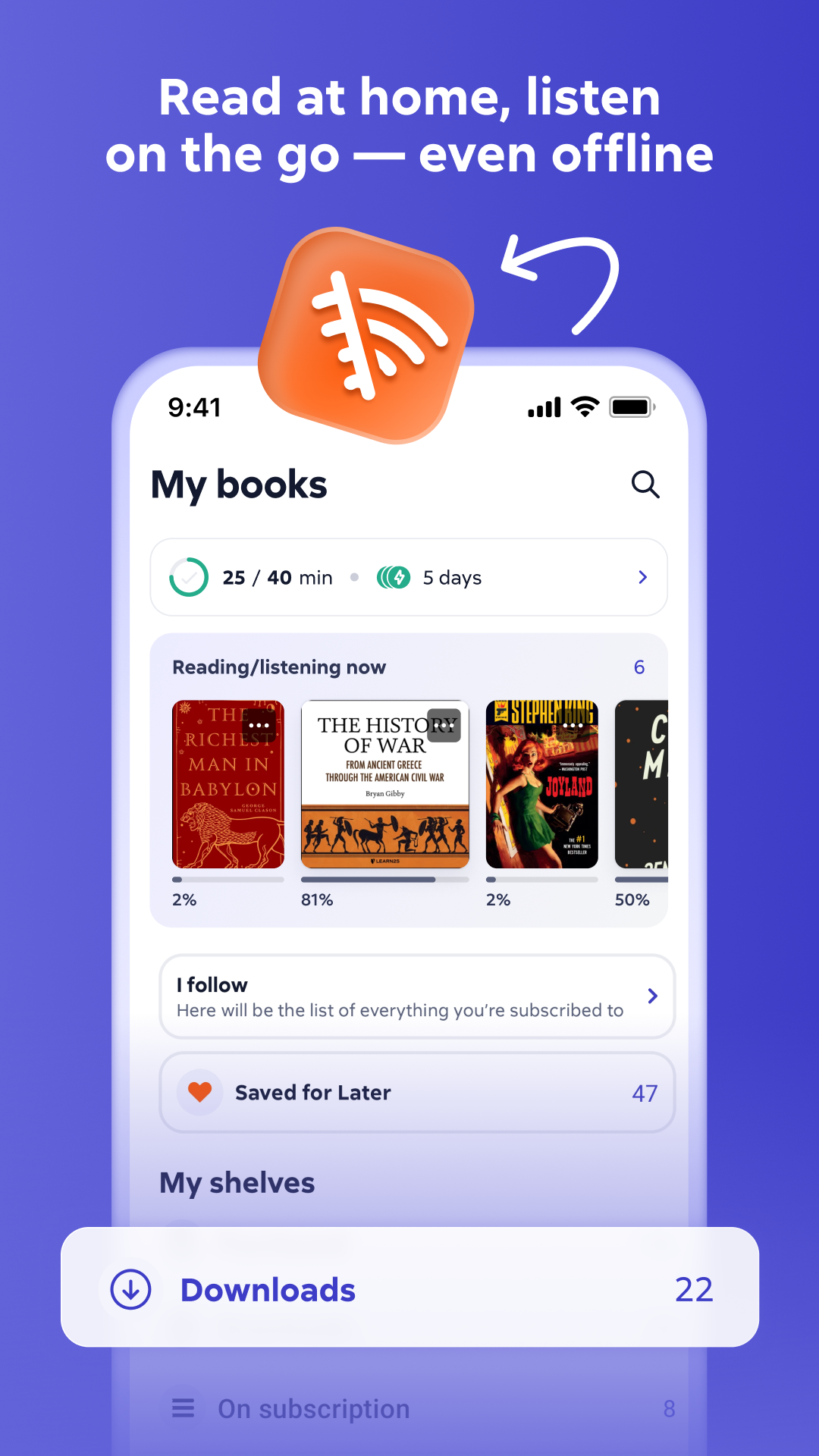 · access you entire library in offline mode even when roaming or outside a network area (you will have to download the books beforehand)