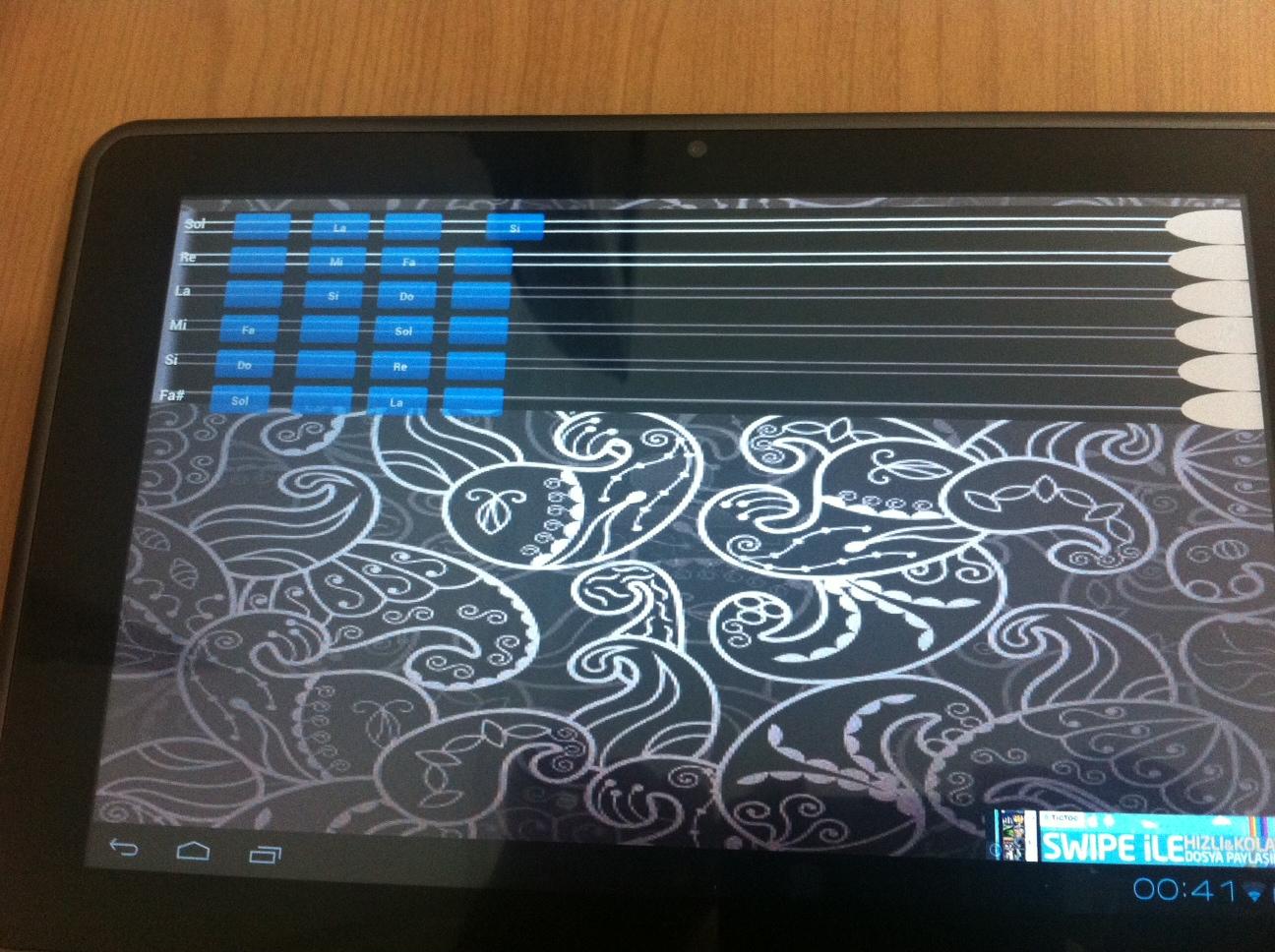 First android Application of Lute Which is one of the main instruments of Turkish music instrument.With this application you can learn to play Lute.If you can already playing a Lute,now you can play anywhere at any time. In this release, the western musical instruments that can be played smoothly in the Hejaz, Nihavend, Kürdili Hicazkar can be performed easily and works composed in their offices Muhayyer Kurdi. After downloading the application, you can learn how to play by following our facebook page. *Exercises Real lute includes Turkish traditional music notes and exercises.You can adjust the speed, see,listen and practice. *Record Now you can record your playing. *Real as possible Close to reality as possible, ensuring that lute practice and a real keyboard is programmed to play the lute. The application was tested on devices: Samsung galaxy s2/s3/ace *Application includes advirtisent for making more free apps,not a virus. Ads wont distract your playing quality.* Wishes and suggestions about the application will be useful for us.