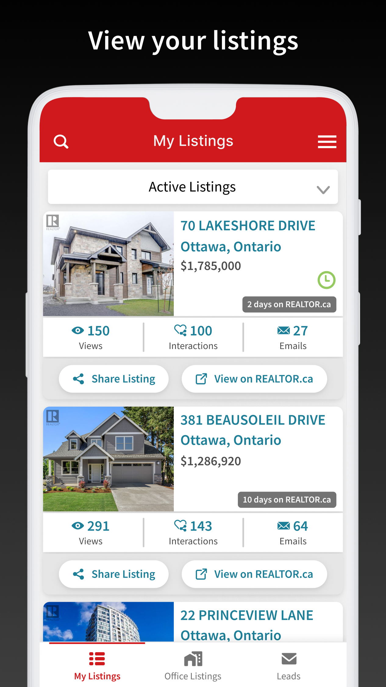 REALTORS®: Access your REALTOR.ca account, REALTOR.ca DDF® listing statistics, and email leads all in one app! With the REALTOR.ca Member App, you can leverage listing statistics reports to stay engaged with your current clients and adjust your marketing strategy to gain new ones.