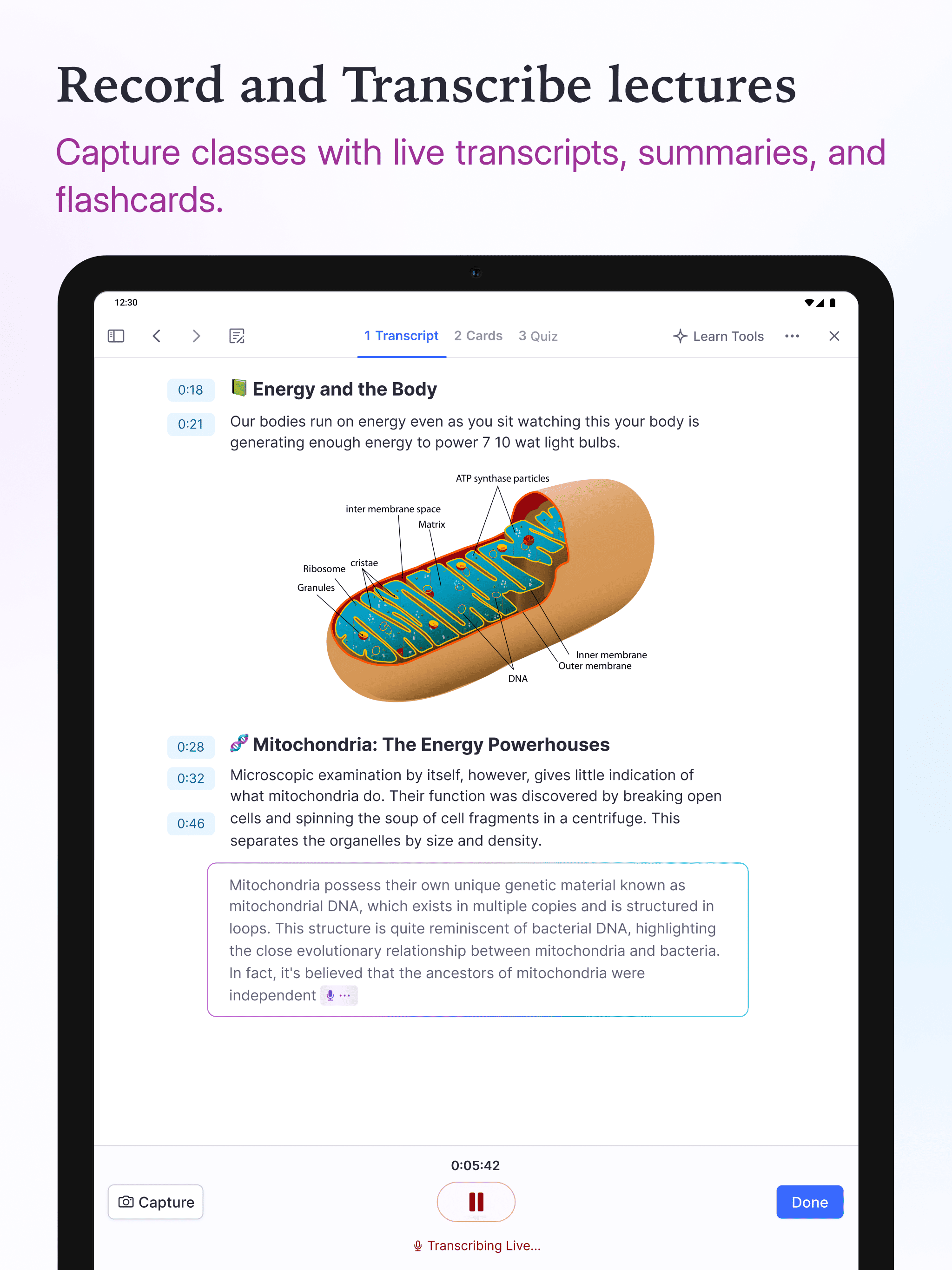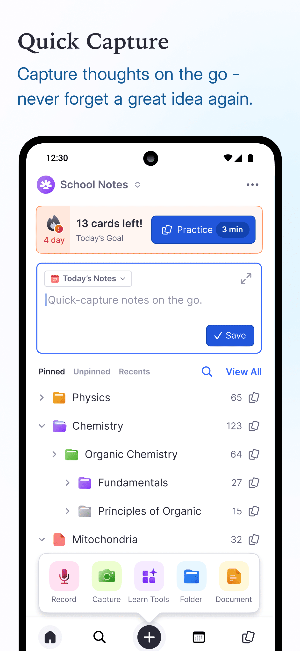 Smart Flashcards: Create flashcards directly from your notes.