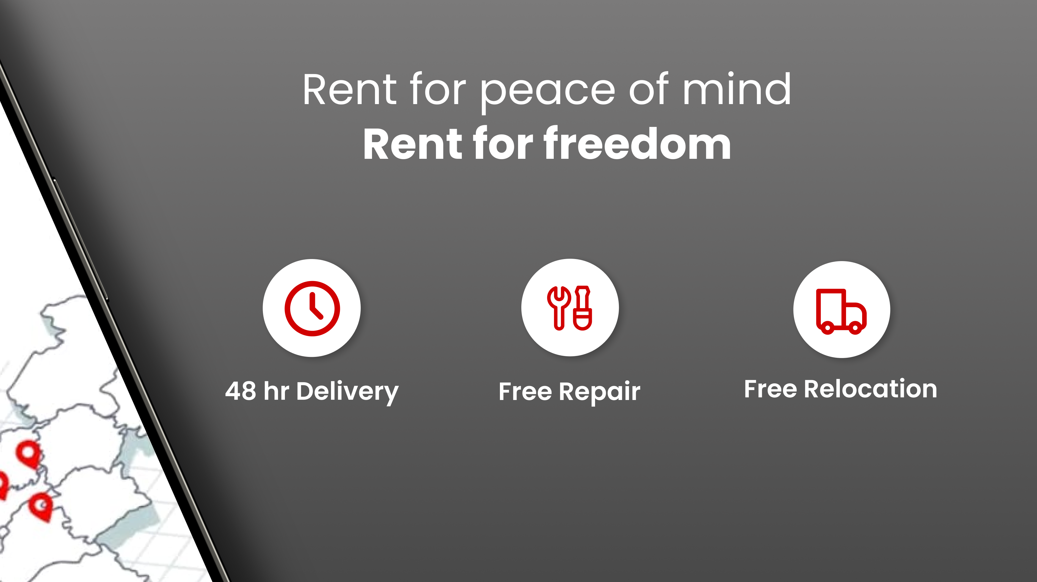 In today’s fast-paced world, renting is not a choice but a strategic lifestyle decision. Now, you can get a Washing Machine, Dishwasher, TV, Microwave and Induction, Water and Air Purifier, Air Conditioner, and Refrigerator on rent a click away. If something goes wrong, we replace it for free.