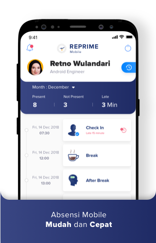 Reprime Mobile, a mobile application based application that aims to help companies to facilitate employee attendance processes. The best solution for managing office hours and shift attendance schedules quickly. Absent Online With face recognition / face matching and GPS geo fencing helps employees make attendance wherever and whenever accurately. Work report Send employee work reports from home or field trips in real time and according to company standards. Submission & Approval Filing leave, overtime and claims easily without having to meet with HR admin or finance. Powerful Monitoring Dashboard Set targets and measure employee performance, and monitor every activity of your employees. Why Choose Reprime? EASY Application that can provide solutions for companies in managing employees every day. Facilitate supervision and assessment system. ACCURATE The resulting data accuracy is high and guaranteed, ensuring all data inputted by employees is validated by the Reprime system. SUPPORT 24/7 Reprime consumers have proven that the support we provide is satisfying. We are very serious in helping consumers quickly and thoroughly. Join us now. Modern, practical and powerful attendance application. Please visit our website https://reprime.id to start the free trial.