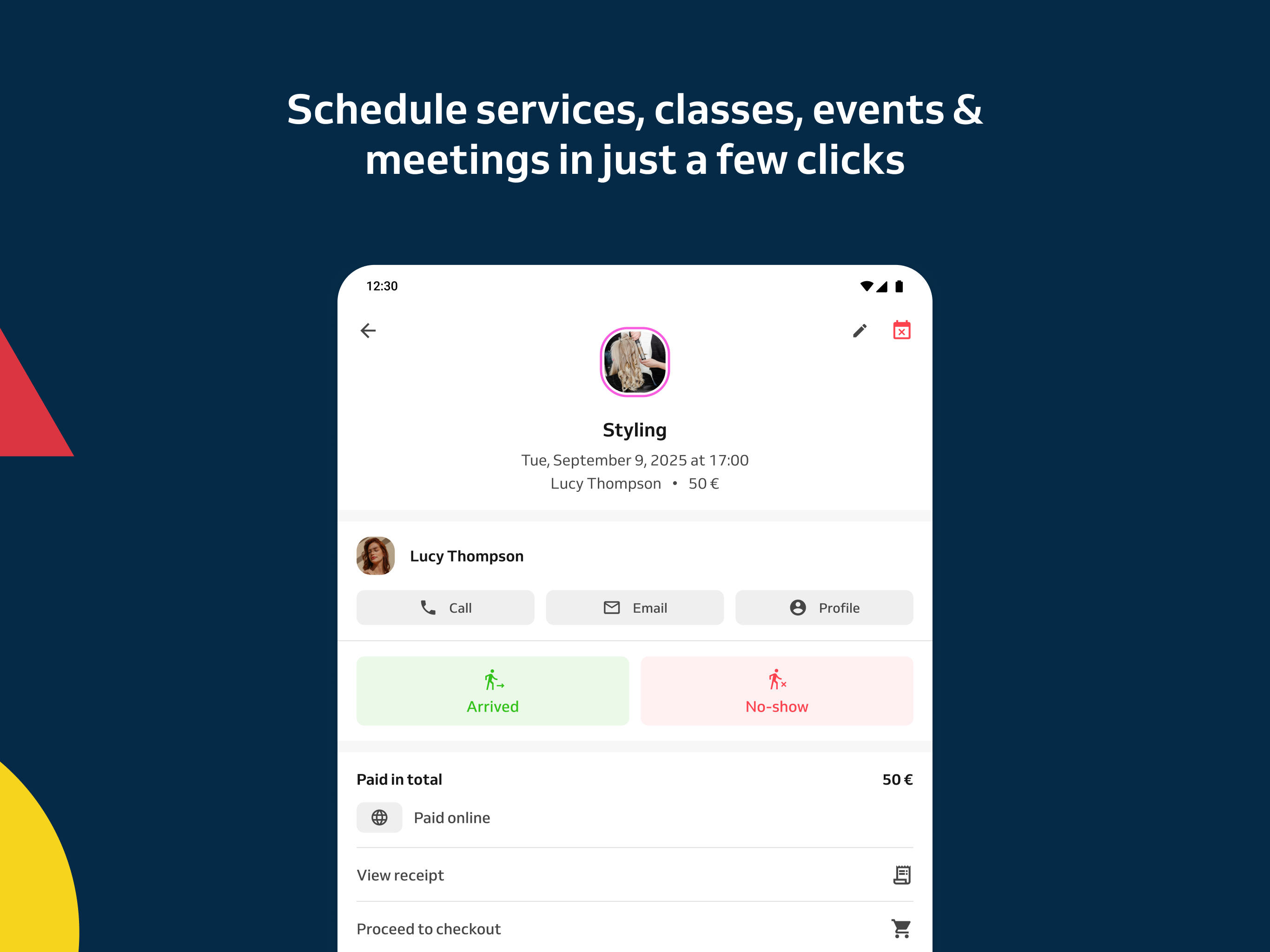 Free online scheduling software for fitness centers, salons, barbershops, medical professionals, and any business offering services to clients. Save time and simplify daily operations with an all-in-one system that combines scheduling, payments, client management, loyalty program, team management, booking reminders, and online calendar. Grow your business: empower clients to self-book and pay in just a few easy steps offer appointments, classes, meetings, or group events send automatic SMS and email appointment reminders to cut no-shows accept online bookings from your website and social media 24/7 get paid for services, products, or loyalty cards with a built-in POS system access customer contacts, booking history, and notes easily manage punch cards, credits, memberships sync data between your personal Google Calendar and Reservio track sales, payments, and overall business performance in real time Download the Reservio Business app for free today!