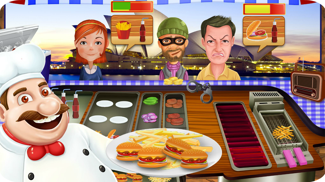 Please welcome our latest game called Restaurant Cooking Games - Fast Food Rush, this is an addictive restaurant simulation game where you have to prepare fast food dishes and serve them to your clients fast to earn coin and upgrade your restaurant. Cooking games are very popular and addictive and we tried to bring in this game something new and you can find over 100 restaurant cooking games and prepare fast food dished in 4 different continents. You will experience a cooking rush fever because you have to cook fast food dishes very fast and serve them to your clients perfectly cooked so you earn the maximum possible coins. Like in all restaurant games your goal is to become a great cooking chef so you start by managing your first restaurant where you have to prepare hot dogs , serve juices to please you clients. After you start to experience the cooking rush fever in your first restaurant and successfully complete over 10 restaurant cooking games you will manage your second restaurant where you serve Chinese food , prepare dishes with soup and noodles serve specific juices and try to please your clients to earn more coins and upgrade your great restaurant. After playing over 20 restaurant cooking games you can go to Italy and start preparing different types of pizza’s in one of the best restaurant in Italy. But this is not the last time you play restaurant games , you can go to Australia and cook other fast food dished with hamburgers and fries and experience the cooking rush fever in your way to become the best cooking chef . We hope you will enjoy our restaurant games , cooking games and experience the cooking rush that we experienced when we created this game. The only way to become a great cooking chef is by practicing and the only way to do this, is by playing a lot of cooking games and restaurant games .
