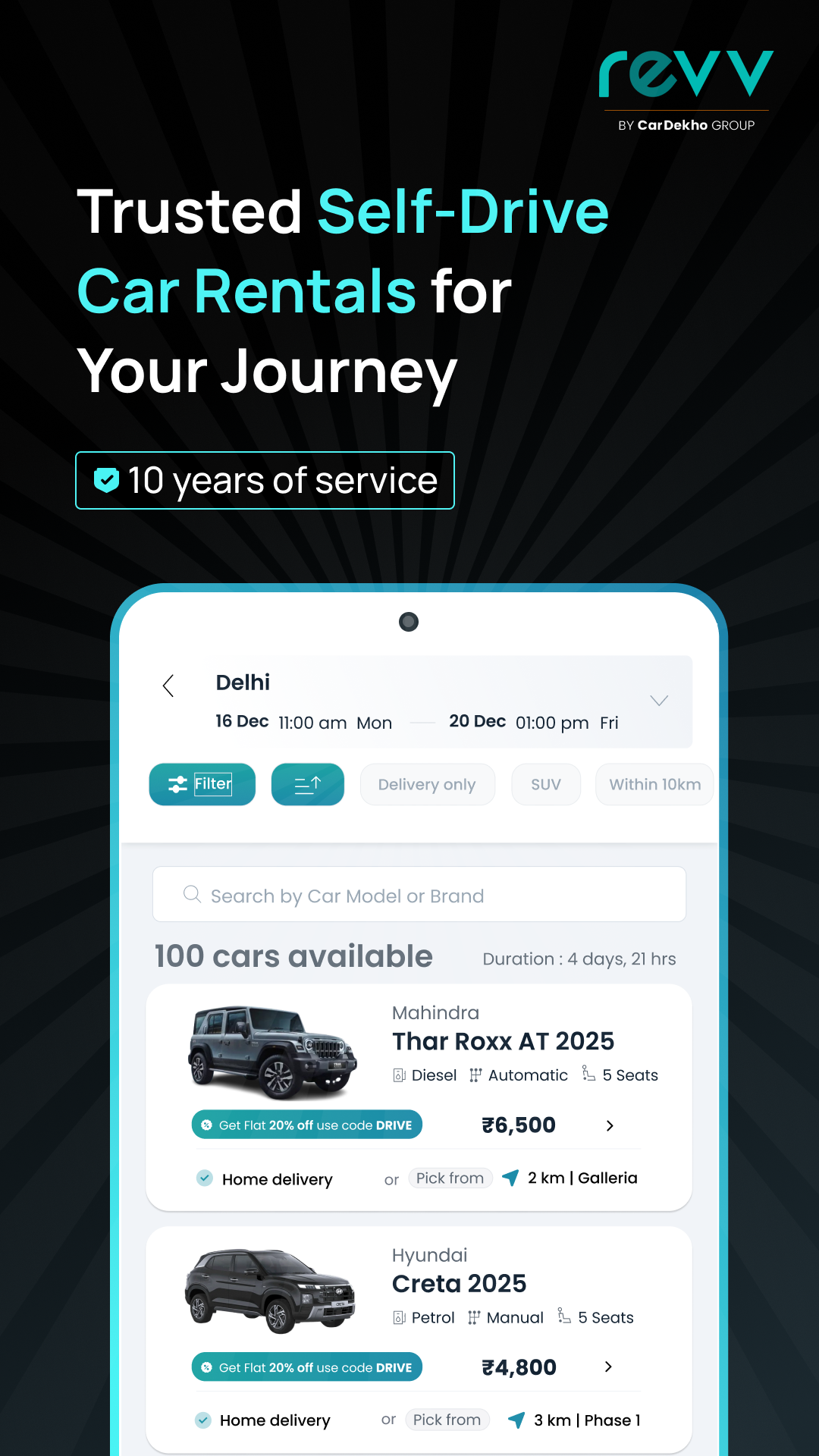 🚗 Self Drive Car Rentals Delivered Right to Your Doorstep with Revv!