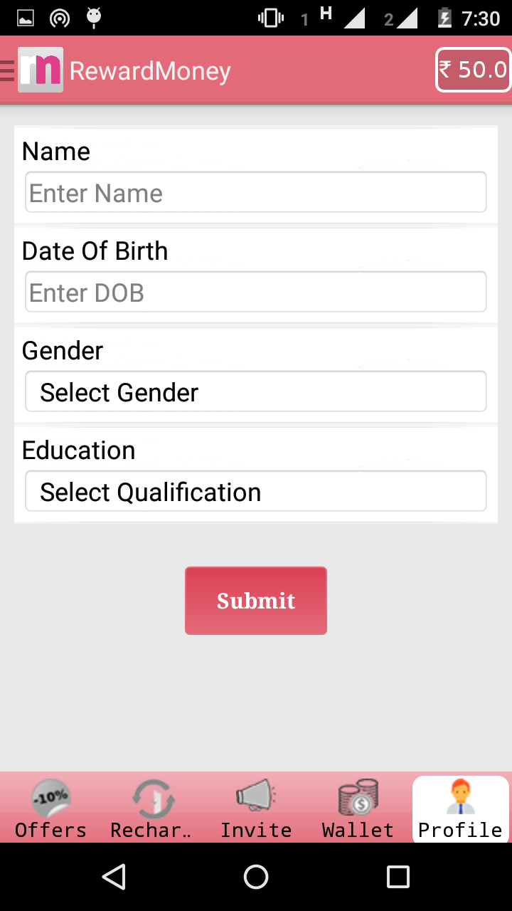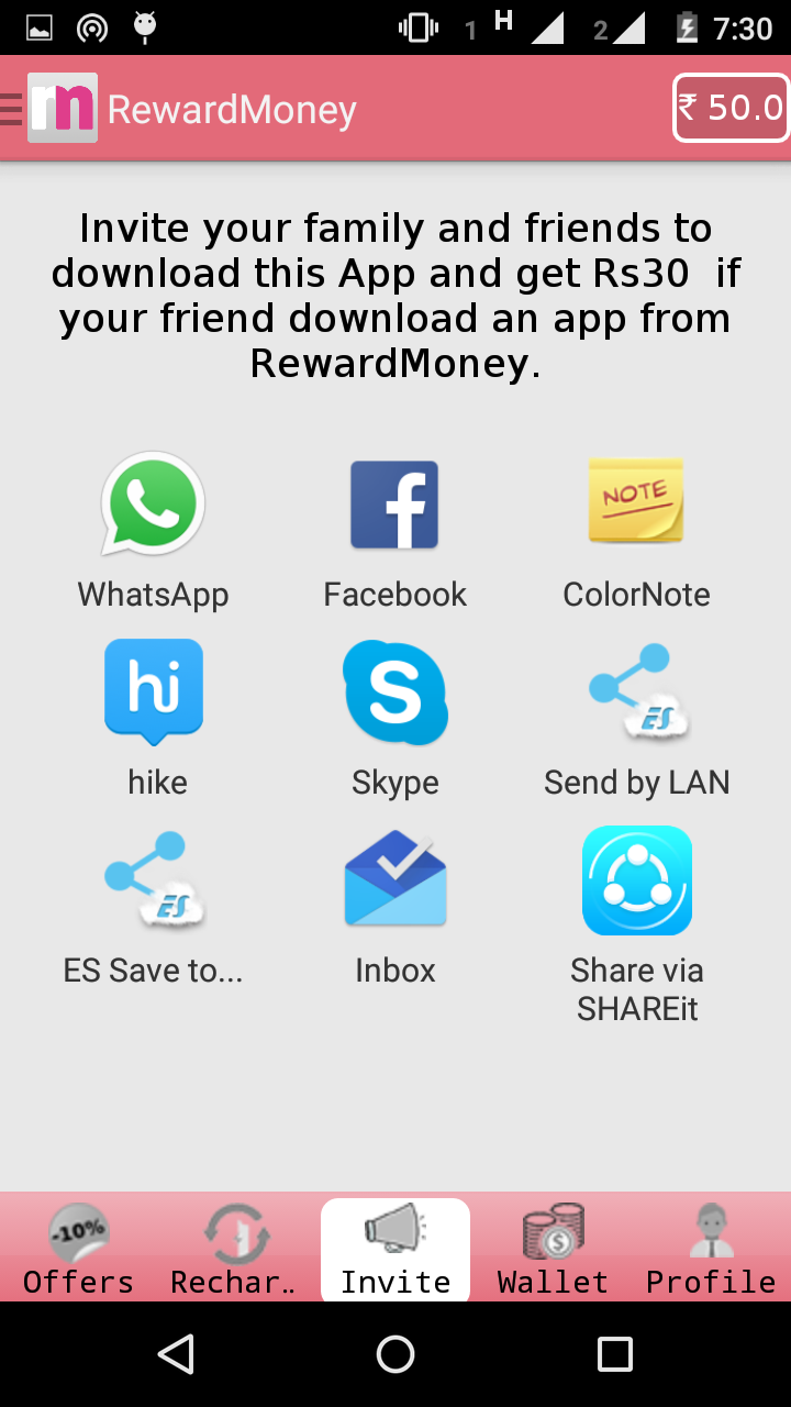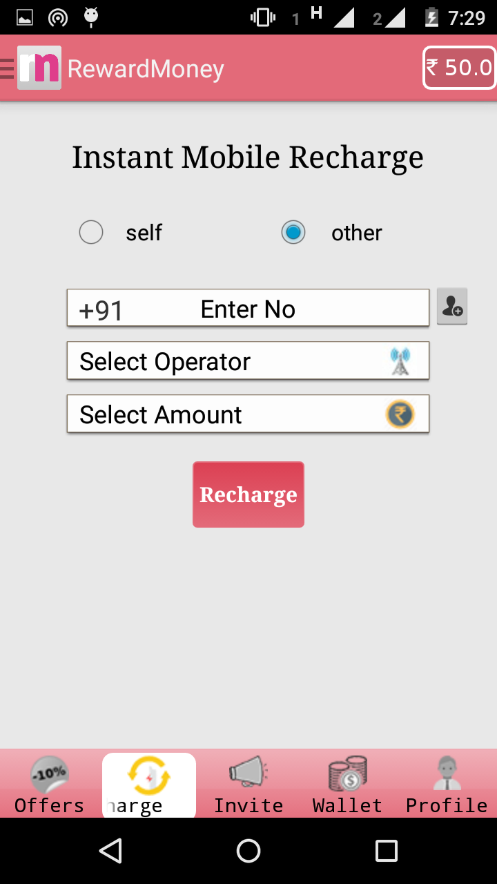 Reward Money is a great way to install free apps and get rewarded with free talk time reward right on your mobile phone. Just download reward money and register with your mobile number. Next, we'll show you best new apps and installing those Apps you will get free talk time as reward. New offers are updated multiple times a week, so you can keep earning free mobile recharge and talk time. Reward Money has unique system of providing personalized offers on basis of your profile, location and preferences. Invite friends and get more free talk time as a reward… *Get free talk time for every friend you get to download the Reward Money app *Invite friends through twitter, whatsapp, facebook, Google Hangouts or any social media. *Get more free talk time when your friend uses reward Money. *Supports all Operator Airtel, Vodafone, Aircel, BSNL, MTNL, Idea, Loop Mobile, MTS, Reliance, Tata *Docomo, Tata Indicom, Uninor, Videocon, Virgin Mobile.