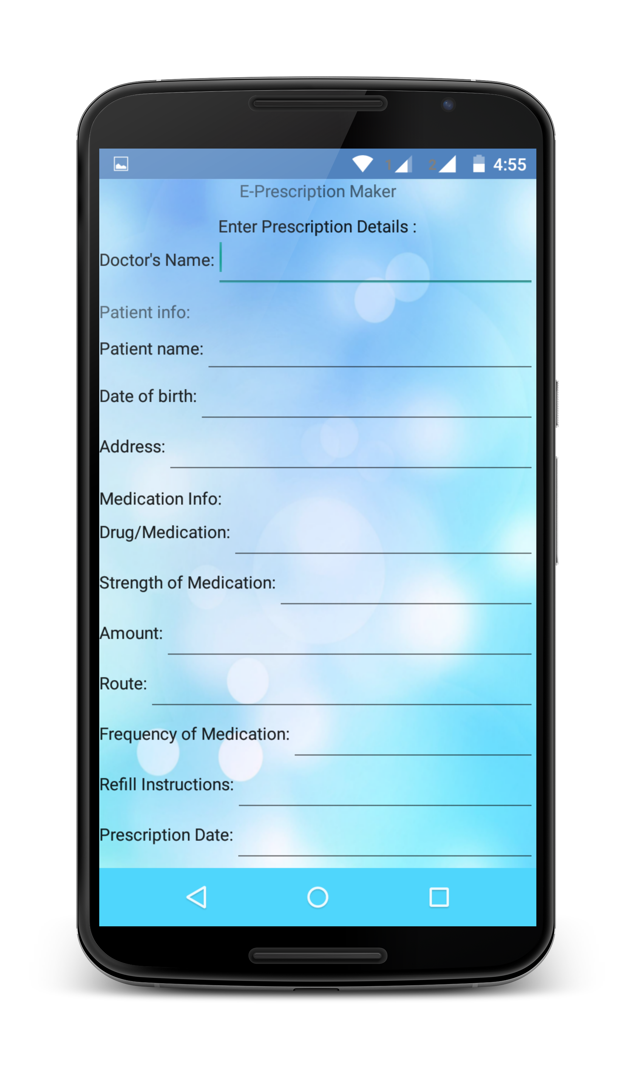 * Easy & Quick: Just fill-in details of prescription and hit "Create" button to generate prescription.