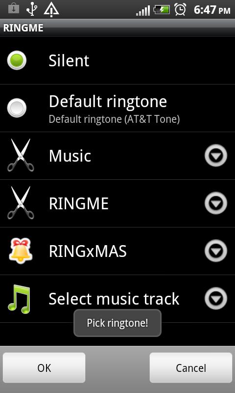 RINGME is an alternative ringtone maker with elegant design, and more enhancements to come in the next updates. RINGME allows user to Share Ringtone via email, wifi, bluetooth, etc ... - add a Sound Manager utility - add a Ringtone Picker utility - add a Media Browser which allows user to browse through audio files in external storage, - an external storage can be either built-in storage or sd card, in case there are both, sdcard could be inside the folder external_sd/ - use the Home button to quickly go back to external storage root while browsing - user can filter hidden files (in Settings) You can find more apps from Genie Nin by clicking Android icon inside!!! Use RINGME to edit MP3, WAV, AAC, and AMR audio files and create ringtones, alarms, and notifications from them.. More below... Tips: - long-press on an audio file from the main screen to delete it. - copy audio files to your SD card using a USB cable, or get MP3s using the default MP3 application. - tap anywhere on the waveform to start playing at that position. - while playing, tap the word Start or End to quickly set the start and end markers to the current playback time. - Use the jog wheel for more precise adjustments. Keywords: MP3, WAV. AAC/MP4. 3GPP/AMR, Ringtone, Music, Alarm, Notification, Contact, Editor, FREE app with AD supported. Permissions: - CONTACTS to SELECT, ASSIGN RINGTONE - STORAGES to SAVE RINGTONEs - INTERNET for AD