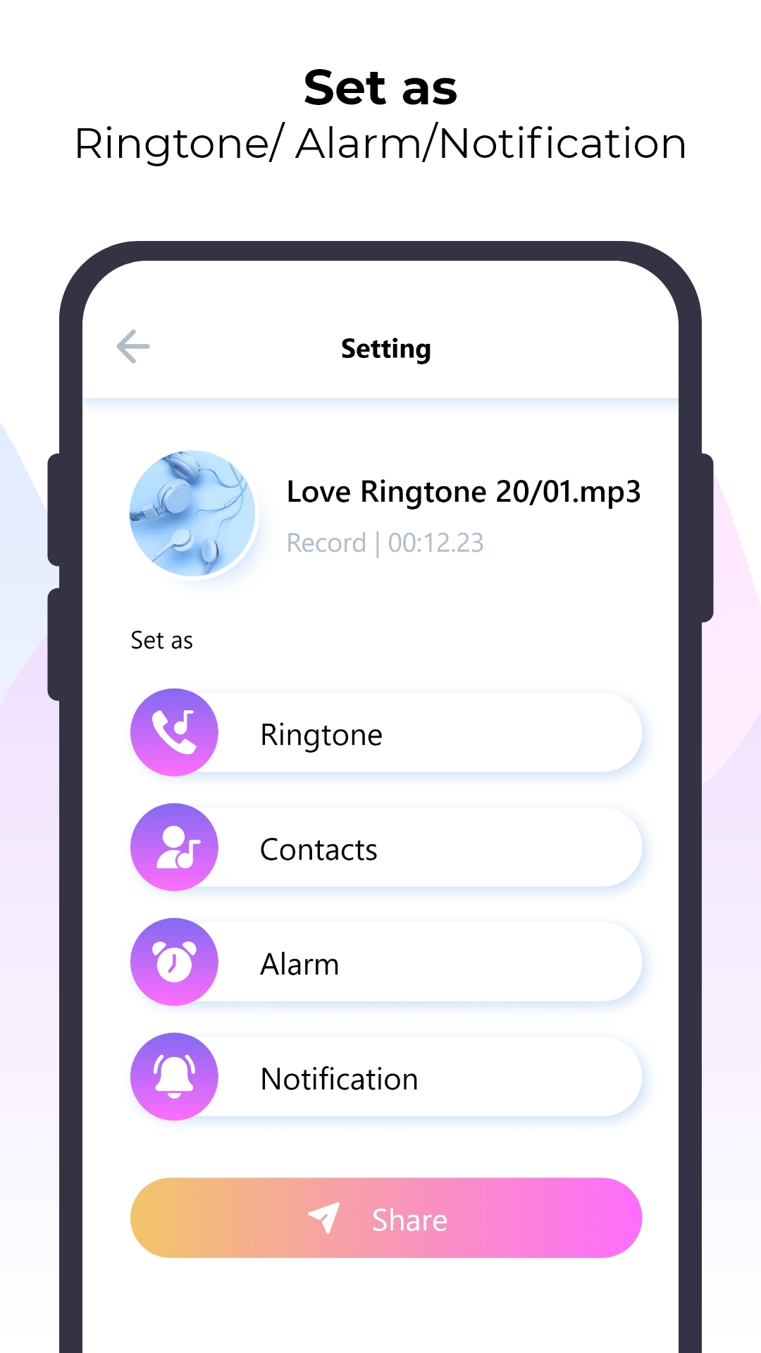 - Rich music treasure is constantly updated - Easily set contact ringtone, SMS alert tones,... - Creative collage, super cool ringtone mix - Create your ringtone from video, text, recording files - Save and share audio files MP3, WAV, FLAC, AAC