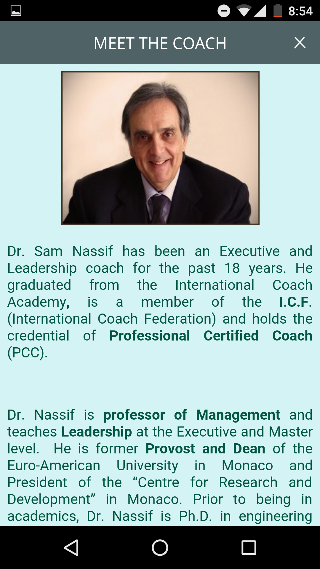 RISE SELF-ESTEEM "RISE® is a method designed to Rapidly Improve your Self-Esteem". I invite you to take the free self-esteem personality test by downloading the App. The aim of the test is to provide a base line score of your current state. The RISE® program is designed to close the gap between where you find yourself today, and where you wish to be in the future. Once you have taken the test, I recommend that you read the Book (or listen to the Audio Book) explaining the essential points of Self-Esteem; how it functions, why it is so critical to our daily existence, and most importantly, how to improve it. A unique tool to boost your self-confidence, Build resilience and move forward in life The RISE® Self-Esteem program utilizes a proven methodology that has been developed as a result of 25 years of scientific research. Based on the findings of Emotional Intelligence, it is the only method which connects emotions to behavior and enables participants to attain rapid and lasting results. The RISE® Self-Esteem program has been successfully used by hundreds of people across a variety of age groups and circumstances. RISE® fits everyone, at any stage and at any time. It can be used wherever you are, at whatever time of the day – on your smartphone, tablet or computer. The method is intended to help everyone, from any walk of life - students, adults, business professionals, at-home mums, seniors,… - to develop and improve their self-esteem. What makes it so unique and powerful is that it is the only self-development method available today that connects emotions with behaviors which is the key to its success. A path towards freedom and a happy life… in only 3 to 8 minutes a day! RISE is a simple, easy-to-use and effective tool that will help you quickly build and improve your self-esteem. A path towards freedom and a happy life. The method achieves incredibly impactful results because of its simplicity and ease of use; enabling you to significantly improve your self-esteem and confidence in just 3-8 minutes per day over a 3-month period. Conquer your doubts, feel your worth. A unique innovative program! In order to make the RISE® Method as user-friendly as possible we have developed a '3 clicks' page inside the mobile app enabling you to keep track of both daily results, and overall progress. The app not only provides a variety of useful information, it is also key to monitoring your 10 days' progress, allowing you to pursue your improvements until you have claimed your true Self-Esteem. I guarantee that by applying the RISE® Method and monitoring your progress using the App, you will see significant increase in both your Self-Esteem and Self-Confidence. The program will not only help you to build up your Self-Esteem but help you (re)discover your true potential, allowing you to not just see, but also to believe in what you can really accomplish across all areas of your life. The RISE® Method will turn self-doubt into self-esteem, and create a happier, healthier, and more confident you. It will not only make you feel more successful, but teaches you to develop an innate trust in the way you live your life, allowing you to say goodbye - once and for all - to the Impostor Syndrome that tells you, 'you are not good enough, or worthy enough'! What you will get – The Book and audiobook of the RISE® Method – The 3-clicks RISE® workbook on the mobile app – Free self-esteem quiz – 9 audio sessions that summarize the RISE® Method – Access to the community forum – Monthly inspiration by Prof. Nassif – And more! I welcome you to RISE® and thank you for the trust you have placed in this unique Method. RISE® can offer you what you really need and what you always wanted to Rapidly Improve your Self-Esteem. Unlock your potential and thrive with RISE®! I look forward to your success, Professor Sam Nassif, Ph.D., PCC – Creator of RISE® Self-Esteem www.riseselfesteem.com
