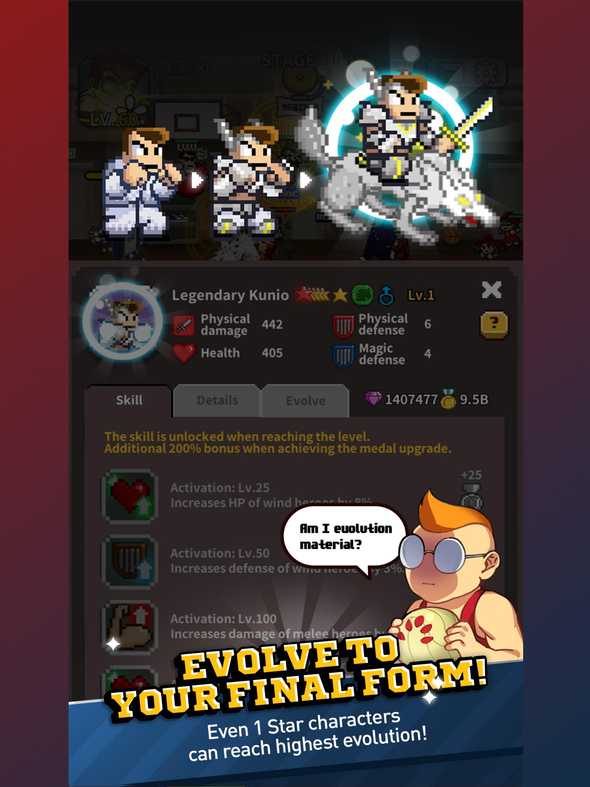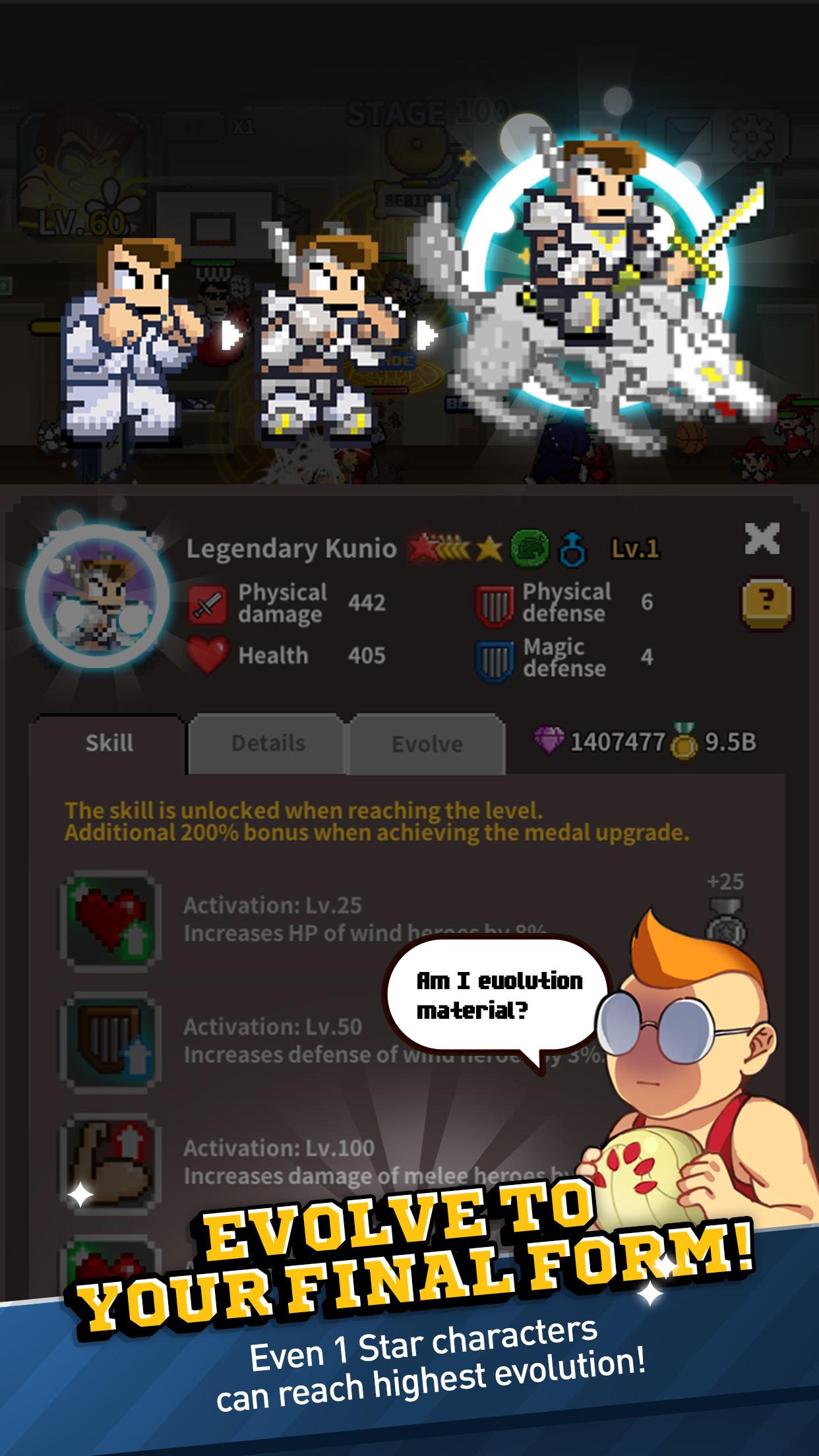 - The world is vast and filled with schools. Experience over 1000 stages of battles set in various backgrounds from the original smash hit series, Kunio!