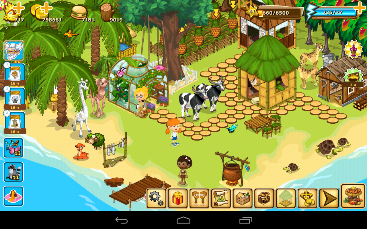 ***This game has been downloaded by millions of users around the world, join them today!*** BUILD YOUR OWN PARADISE! Escape from stuffy city to beautiful tropics! Your ADVENTURE begins today! Your plane has crashed and you happen to be the only person on the island who survived. There are palm trees, tropical sun and tropical fruits all around you. The land doesn't look the worst place to live in, does it? Okay, it will take some time to build your new tropical life, but the time is worth it! Start with clearing some space. Look around for wood, stones, and grass as they are quite good for building your hut. Check out old tree hollows and age-old boulders, as they may hide something valuable for you. Now proceed to creating your OWN FARM, botanical garden, orchard or ranch – you name it. Luckily there are some seeds and animals that also survived the crash. You can plant mango and papaya or simply a garden-bed of cabbage! Breed giraffes or hens and you can build your own animal yard! Be cautious, it is still a wild island with wild beasts. Don’t forget to protect your domestic animals and plants. Create your workshop, turn a piece of ironwood into a heavy club, bind quartz rock to it – you’ll get a perfect hand-axe to scare off all the beasts. Do not stop here, more adventures are to come! Hey, it looks like a TREASURE chest has washed ashore. Check it out, but be careful, there is something mysterious floating on the waves and some creepy pirate’s ghost is hiding nearby! Looks like you can’t just defeat them with your axe, you need something more serious! Not to worry, you can get some help from your friends! Hire Men Friday from Facebook, VK, Game Center for your tasks. Give them some tropical gifts, for example snakes or chimpanzees. Make your tropical paradise the most prosperous one and become the best Robinson of all time! What is waiting for you on the island? - More than 20 animals and more than 20 plants - 68 unique collectibles - 15 types of building - Over 300 quests - Regular updates Like us on Facebook: http://www.facebook.com/robinson.mobile Google+ fun page: https://plus.google.com/u/0/communities/110159193761553851346