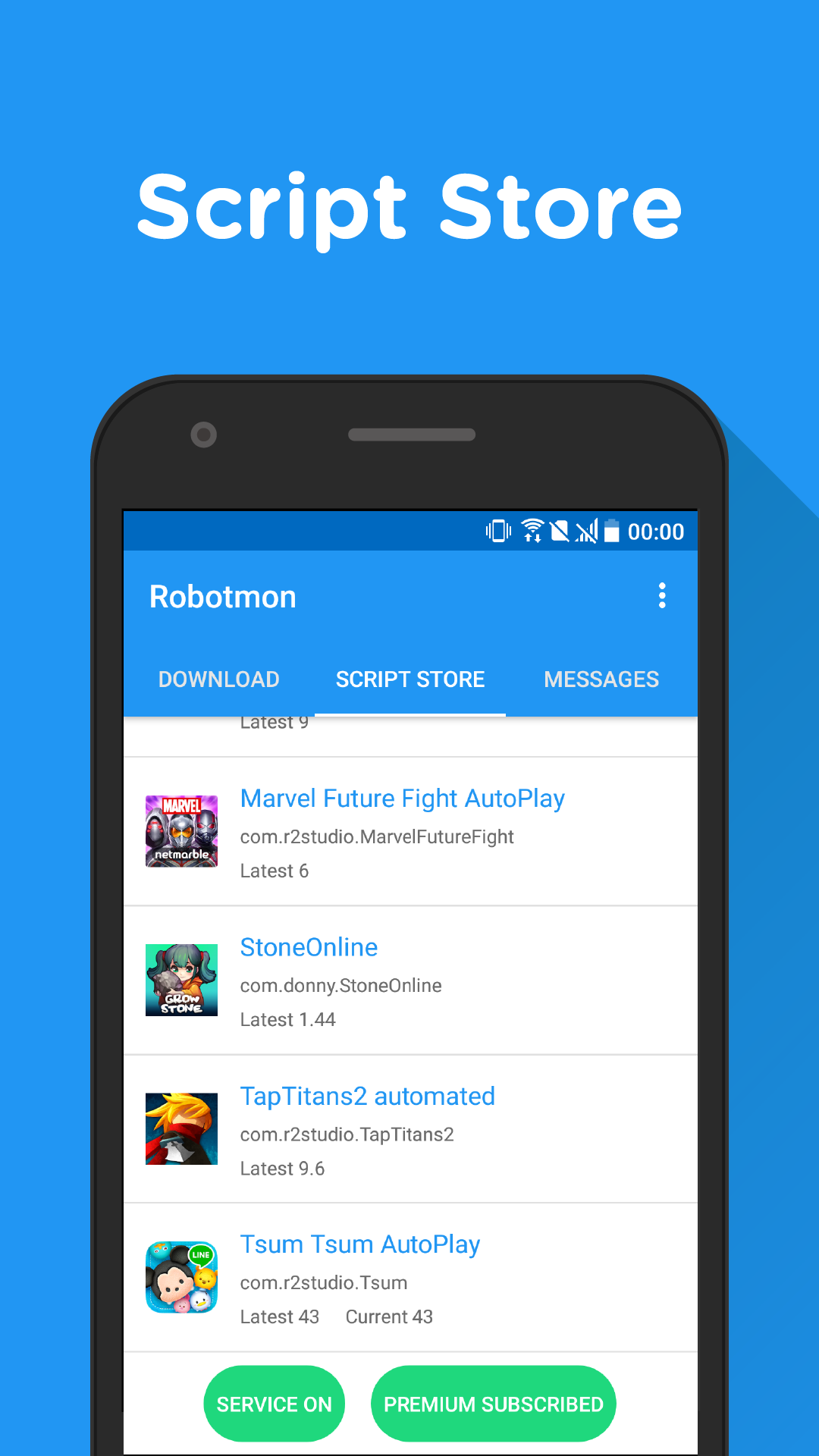 🤖 News! Easy Mode: No PC required!! Supports Android 8.0 or above Robotmon is a javascript interpreter run on android phone. And run routine tasks automately Below Android 7, Use Simple Manager to launch Robotmon service first Above Android 8, supports EasyMode, no needs PC anymore. Also supports PC launching Supports most of Android emulators!! Nox, LDPlayer, momo, memuPlay 🤖 Robotmon Introduce Robotmon is a javascript interpreter run on android phone. And run routine tasks automately Supports screenshot, touch, image recognition, key input,... more than 40 APIs. 🤖 Features • Root not required. Only first time to launch service needs Simple Manager installed PC • Javascript for easy to use, supports ES5 • Integrated with OpenCV Apis, template matching, enhance images, find edge images • Free download open source scripts. (http://bit.ly/2EfVUMg) • Cookie run Kingdom: automated production and other features to help manage your kingdom! • TsumTsum script: Auto receive hearts, auto sending hearts, auto play game, and record hearts who sent, etc • LineageM script: Detect HP/MP and auto use skills, auto buy items,... 🤖 Usage Importand!! You should launch robotmon service before starting scripts EasyMode (above Android 8.0) • Just click rocket button at right-bottom to launch service Use SimpleManager to launch service (below Android 7.0) (Require PC at first time) • Install Robotmon App • Enable developer options on android phone (Google for more information) • Enable USB debugging on phone (from developer options) • Install ADB driver (phone driver) on PC (Required on Windows, download the drive from official site of your phone) • Connect the phone to PC, download the Robotmon SimpleManager (Windows: http://bit.ly/2I94Qri, Mac: http://bit.ly/2VFu6gV, Linux: http://bit.ly/32Brkus). Latest release information: https://github.com/r2-studio/robotmon-desktop/releases • Start Robotmon Service • Now start app and pick a script to run! Enjoy! 🤖 More Information • Facebook: https://www.facebook.com/RobotmonOfficial • Website: https://docs.robotmon.app/ • Github: https://github.com/r2-studio Feel free to leave a message to our Facebook fans page! 🤖 Develop Scripts and open source • Cross platform developer tool, VSCode Extension: http://bit.ly/2W5hiQR • Open source scripts and apis documents: http://bit.ly/2EfVUMg • More developer tools: http://bit.ly/2EgetQx 🤖 Accessibility API Users can switch on/off airplane mode on specified page through Accessibility service. Also helps mimic user screen touch behavior through Accessibility API to automated routine tasks. The app will not collect users' information or perform any action through Accessibility service on other pages.