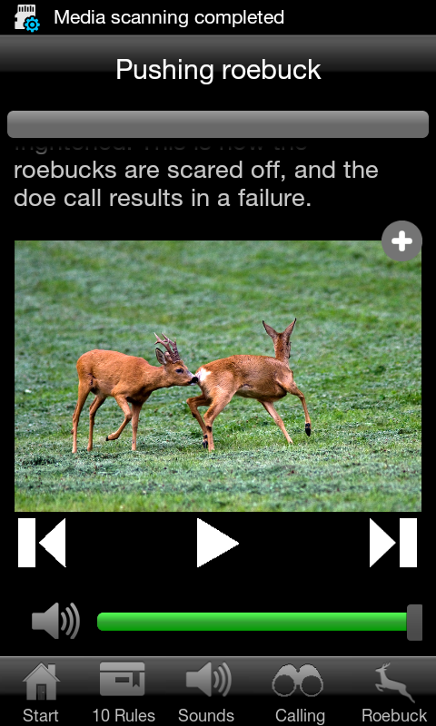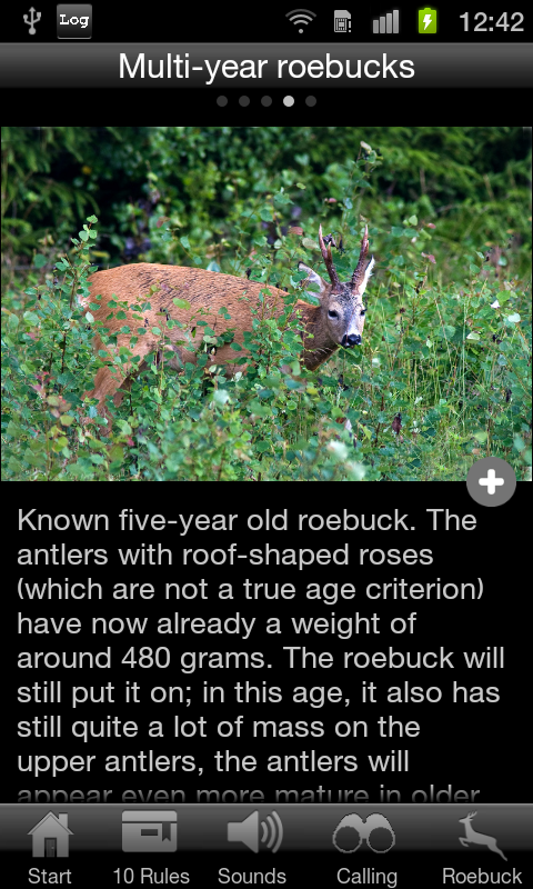 Successful roebuck hunting during the rut with Erich Marek – My basic course for professional roebuck hunting during the rut. The extensive hunting app for successful roebuck hunting during the rut, including original calling sounds of Erich Marek, the ten golden rules, identifying aids with numerous roebuck photographs, trophy Management, and many other features. Successful roebuck hunting during the rut with Erich Marek, the basic course for professional roebuck hunting, offers: - The most important hints and tricks from more than 50 years of experience of the professional hunter Erich Marek - Original sounds for roebuck hunting during the rut with detailed descriptions for using the respective sounds - Extraordinary roebuck and doe photographs - Detailed description of the rules for hunting rutting roebucks - Specific information and guidance for correct identifying the roebucks’ age - An own trophy room: Here you can store photographs of your own roebucks Categories: - 10 golden rules for roebuck hunting during the rut, including hints for the calling place, the most successful roebuck hunting weather, behavior when the roebuck is approaching, use of the calling sounds, etc. - Calling sounds: Doe call, “pia” sound, desired driving by the buck, fear screaming, fawn call, fright sound, fright sound of a roebuck jumping away, including description of interval and duration of sound series, loudness control -Identification: Detailed description and fascinating photographs of yearlings, multi-year roebucks, and ready-to-shoot roebucks -“My roebucks”: Trophy room with the opportunity of shooting, storing, and managing photographs of own roebuck trophies. Please note the videos are in german language but we are working on the localization. A professional pocket trainer for roebuck hunting during the rut with Erich Marek, the experienced and well-known nature photographer and hunter. With this app, you will become a rutting-roebuck hunting expert. Good luck!