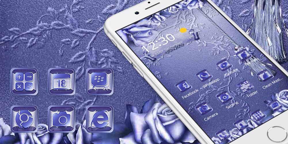 Get the Romantic Blue Roses Launcher Theme, the wallpaper of glitter roses and the square stylish blue icons pack.The classic purple and romantic roses theme decorated with deluxe luxury rose makes the blue roses beautiful and more classic.
