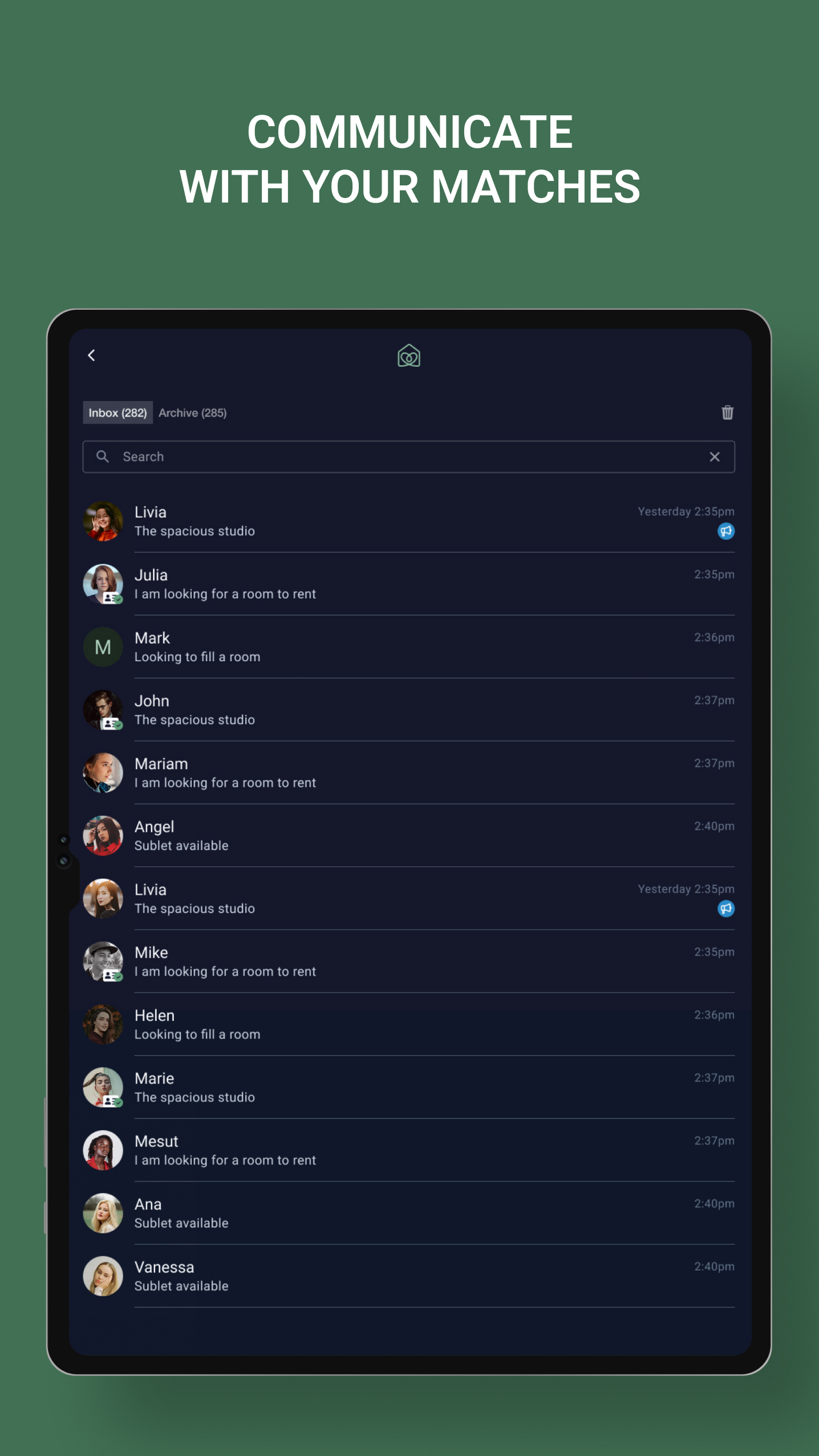 Chat directly in-app with potential roommates or landlords — no email backlog or lost threads.