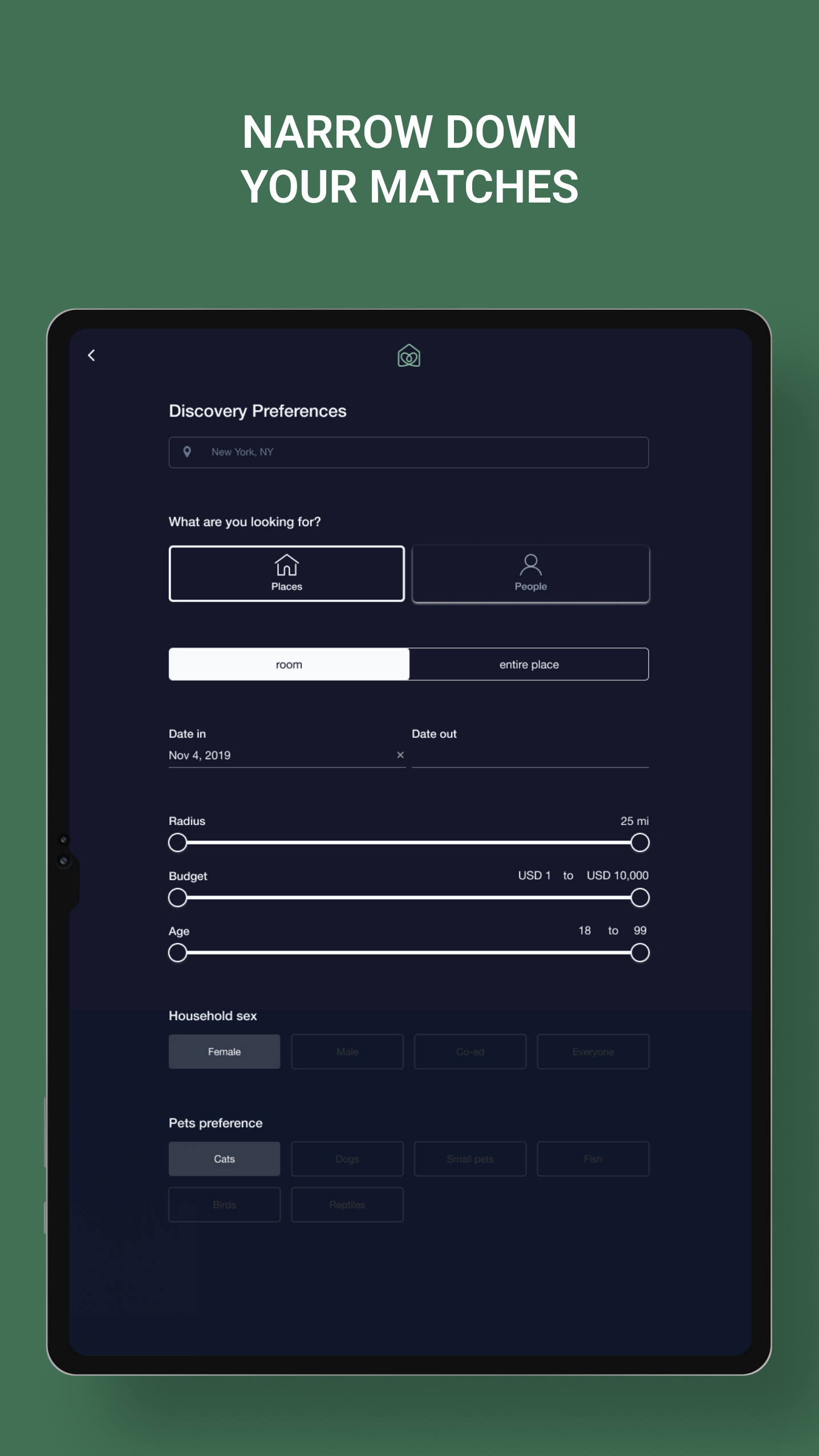 Smart roommate matching helps you find people with shared interests and habits