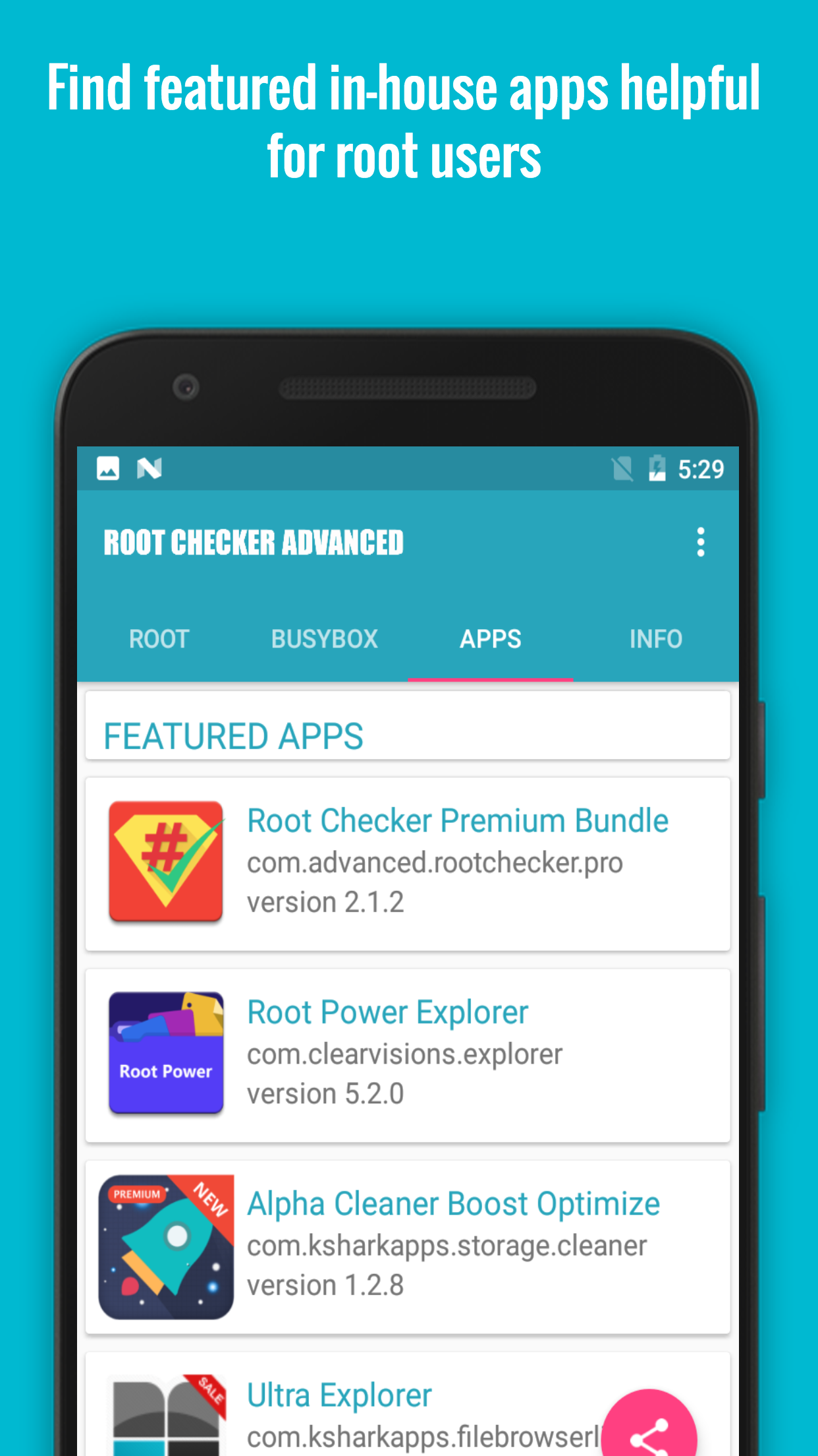 Root Checker Advanced (Package Name: com.advanced.rootchecker) is developed by KShark Apps (Root Essentials) and the latest version of Root/Super Su Checker Free [Root] 2.3.4 was updated on July 15, 2019. Root/Super Su Checker Free [Root] is in the category of Business with the feature Location Tracking. You can check all apps from the developer of Root/Super Su Checker Free [Root]. Currently this app is for free. This app can be downloaded on Android 4.0.3+ on APKFab or Google Play. All APK/XAPK files on APKFab.com are original and 100% safe with fast download.