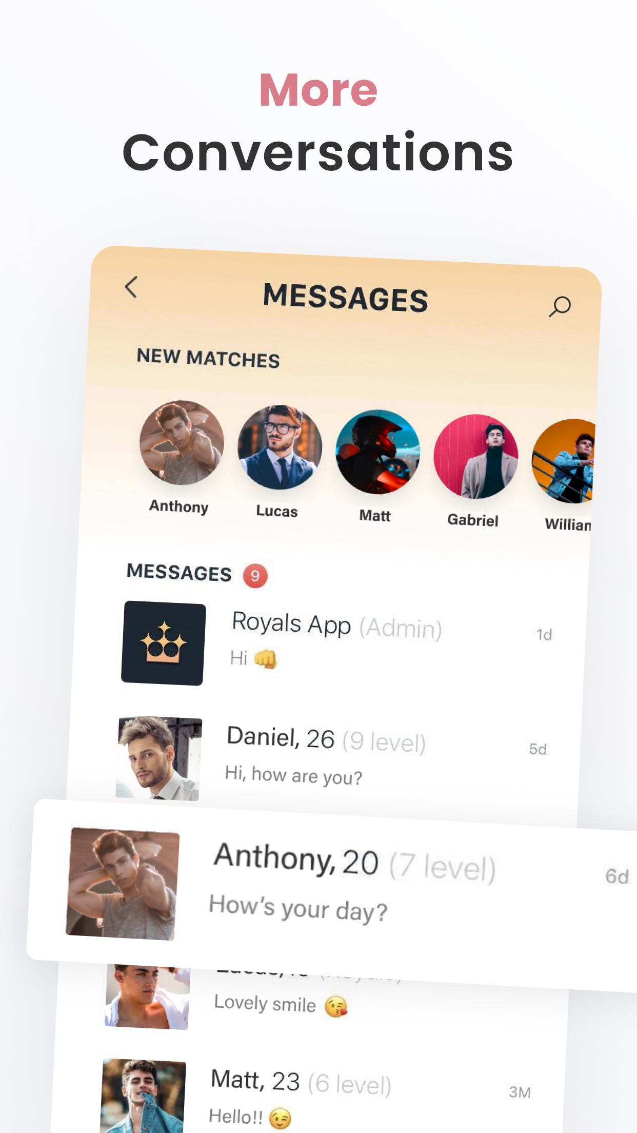 Download 👑 Royals App -> ✅ Match men or women -> 💋Chat & send photos -> 🏆❤️ Win ranking, love & join the elite