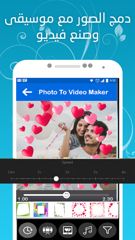 Объединение изображений с песнями и создание видео 2019 - ваш первый друг на все случаи жизни. Вы можете сделать видео на день рождения для радости, чтобы помолиться в поездке, где вы можете собирать фотографии, которые вы встречали с друзьями в любом случае, и добавлять свои любимые песни и выводить их в более чем замечательное видео, чтобы поделиться Объединение изображений с песнями и создание видео позволяет добавить более 50 типов движения. Вы можете создавать анимированные изображения и делиться ими в различных социальных сетях. Вы можете сохранять видео и просматривать их снова через приложение для создания видео с изображениями и музыкой 2019 Некоторые особенности приложения: Вы можете преобразовать фотографии в профессиональное видео о своем бизнесе и создать прекрасное видео, все благодаря приложению для создания видео с изображениями и музыкой. Приложение, которое чаще всего ищут в программе, позволяющее создавать качественные профессиональные видеоролики, комбинируя изображения с песнями. Выберите, как движутся изображения Сохраните видео, чтобы посмотреть его вместе с другими и показать своим близким и друзьям. И поделитесь этим в социальных сетях Замечательная программа для фотографий, позволяющая объединить изображения в одно профессиональное видео. Вам не нужны курсы фотографии или редактирования видео, эта программа поможет вам легко создать профессиональное видео для вас, вашего продукта или вашей поездки. Преимущества приложения ✔ Приложение горит на телефоне и не сильно потребляет оперативную память ✔ Объединяйте фотографии, объединяйте их с песнями и снимайте видео ✔ Слияние изображений с песнями легко использовать ✔ Конвертируйте фото в видео с музыкой ✔ Объединяйте изображения с песнями, самое быстрое приложение для создания отличного видео ✔ Вы можете предварительно просмотреть созданное перед сохранением видео на телефон. ✔ Количество изображений, которые можно разместить, бесконечно, что означает, что вы можете разместить все свои фотографии ✔ Конвертируйте фото в профессиональное видео ✔ Добавить фантастические эффекты к видео ✔ Вы можете добавить более 40 фото Объединение изображений и песен и создание видео - ваш первый друг на все случаи жизни. Вы можете снять видео на день рождения, на радость, на помолвку, для поездки или запечатлеть особые моменты для себя или с другими с помощью видеолюбителя. Так что для создания клипа потребуется всего несколько щелчков мышью, и он будет Полностью профессионально, изображения выбираются или фотографируются, программа использует метод объединения изображений и их сборки по порядку. Вы можете собирать фотографии, с которыми вы встречались с друзьями по любому поводу, добавлять свои любимые песни и выводить их в более чем замечательное видео. Вы можете сделать профессиональное видео о своем бизнесе и создать видео-резюме Приложение, которое чаще всего ищут в магазине приложений, программа, которая позволяет создавать высококачественные профессиональные видеоролики, комбинируя изображения со значениями. Вы можете сделать профессиональное видео о своем бизнесе и создать видео-резюме Приложение, которое чаще всего ищут в программе, которое позволяет создавать высококачественные профессиональные видеоролики, комбинируя изображени