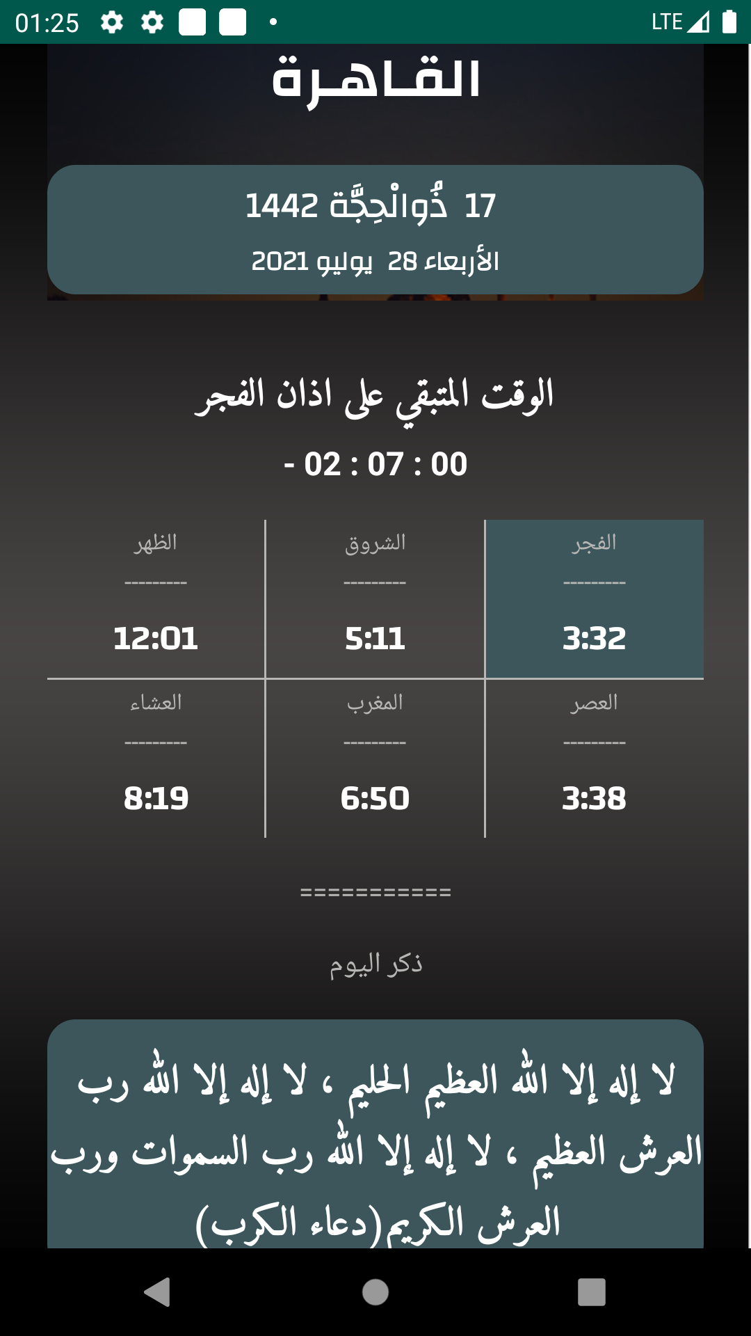 مواقيت الصلاة لمدن مصر مضبوطة و دقيقة و مواقيت رمضان بدون أي خطأ تمت إضافة الشهر الهجري و أذكار النوم و الإستيقاظ من النوم القرأن الكريم للقراءة و الإستماع بصوت الكثير من مشاهير القراء إضافة خاصيات جديدة : الأذكار مع الإحصائيات، مواقيت الشهر، رنات إسلامية، دروس، رمضان، يوم الجمعة. إضافات للمسلم, اتجاه القبلة, أسماء الله الحسنى شكل جديد و جميل و سهل الإستعمال