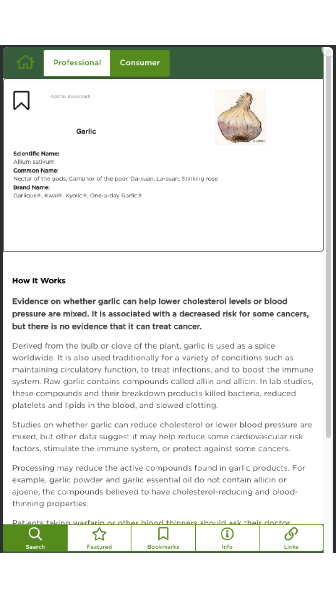 • Preference settings for healthcare professional or consumer view • Expanded entries • New featured entries • Links to Integrative Medicine Service offerings, programs, and clinical trials • Improved search
