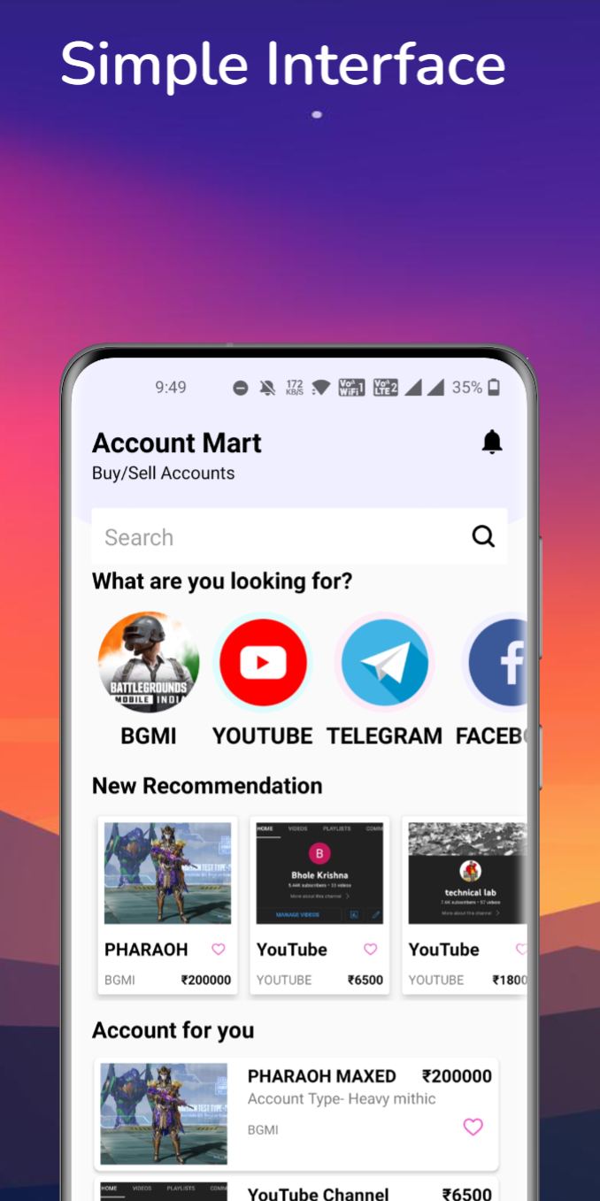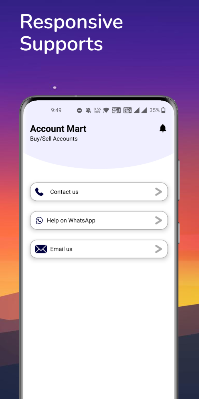 Account Mart — это торговая площадка для покупки и продажи аккаунтов в социальных сетях, веб-сайтов, каналов, bgmi, телеграмм, instagram, facebook, valorant, coc и приложений. Присоединяйтесь к самой быстрорастущей бизнес-платформе онлайн-покупок и продаж, где предприниматели находят новые способы заработка в Интернете. 🎯 Лучшая торговая площадка для покупки и продажи онлайн-бизнеса. Здесь вы можете размещать свои бесплатные объявления, такие как учетные записи для продажи, веб-сайты для продажи, любую учетную запись для продажи, приложения для продажи на аукционе в качестве объявлений. Это бесплатная торговая площадка для размещения объявлений о продаже вашего онлайн-бизнеса. ✅ Ищите, покупайте или делайте предложения о товарах. ✅ Находите и просматривайте предметы на ходу. ✅ Получайте уведомления о товарах, которые вы просматриваете и продаете. ✅ Общение в режиме реального времени с покупателем и продавцом. 🔰 Мы гарантируем 100% безопасность при передаче вашего актива. ⚡ Предоставляется услуга условного депонирования для веб-сайтов, приложений, доменов и учетных записей в социальных сетях по самой низкой цене в отрасли. ⏩⏩ Для продавцов: продавайте свой онлайн-бизнес в безопасной и надежной среде. Продавцы могут бесплатно размещать свои учетные записи, каналы, веб-сайты и приложения на Account Mart. 🔸1. Зарегистрируйте аккаунт на Account Market. 🔸2. Создайте свой список вашего актива, чтобы получать лучшие предложения от покупателей. 🔸3. Выберите покупателя и завершите передачу активов. 🔸4. Получите деньги безопасно в свой кошелек, которые вы можете вывести на любой банк/кошелек/paypal и т. д. ⏩ Для покупателей: купите тысячи веб-сайтов, приложений и учетных записей в социальных сетях с безопасной транзакцией условного депонирования. 🔹1. Зарегистрируйте аккаунт на Account Mart. 🔹2. Найдите онлайн-бизнес и разместите предложение. 🔹3. Откройте контракт, чтобы завершить транзакцию. 🔹4. Получите актив от продавца и подтвердите. 💠 Преимущества Account Mart ✔ Безопасная торговля ✔ Поддержка 24/7 ✔ Высокая прибыль ✔ Самая низкая комиссия ✔ Высокая видимость 💠 Услуги: 💲Купить и продать сайты 🖥 💲Покупайте и продавайте приложения 📲 💲Купить и продать домены 🌐 💲Купить и продать аккаунты и каналы в социальных сетях 📽 📜 Отказ от ответственности: 🛡 Это приложение не связано с Youtube, Instagram, Facebook, Tiktok или любыми другими социальными сетями или брендами и не имеет к ним никакого отношения. Это право пользователя, что он делает со своими учетными записями. 🛡 Любые несанкционированные действия или нарушения прав интеллектуальной собственности являются исключительной ответственностью пользователя. 📨 Свяжитесь с нами 📨 📩 По любым вопросам или отзывам, пожалуйста, напишите нам Инстаграм: https://www.instagram.com/accountmartofficial Фейсбук: https://www.facebook.com/accountmartofficial Твиттер: https://twitter.com/accmartofficial Наш сайт: https://www.accountmart.in Простой. Удобный интерфейс. Безопасный Account Mart From Alexander Gaming — это безопасная и надежная торговая платформа для социальных сетей и киберспорта с удобным интерфейсом. мы с 2019 года. За этот период мы успешно совершили 6000+ сделок и у нас более 5000 счастливых клиентов. *Простая страница входа* Account Mart имеет простую страницу входа. При первом запуске приложения после загрузки вы можете войти в систему, пройдя всего одну OTP-проверку. *Простой способ торговли* Вы можете торговать своими