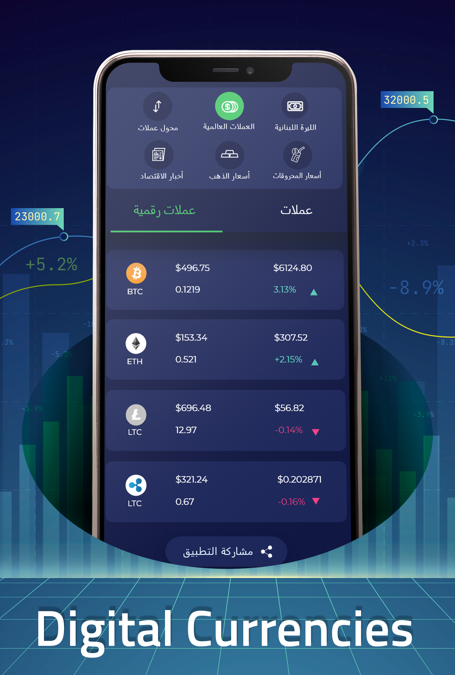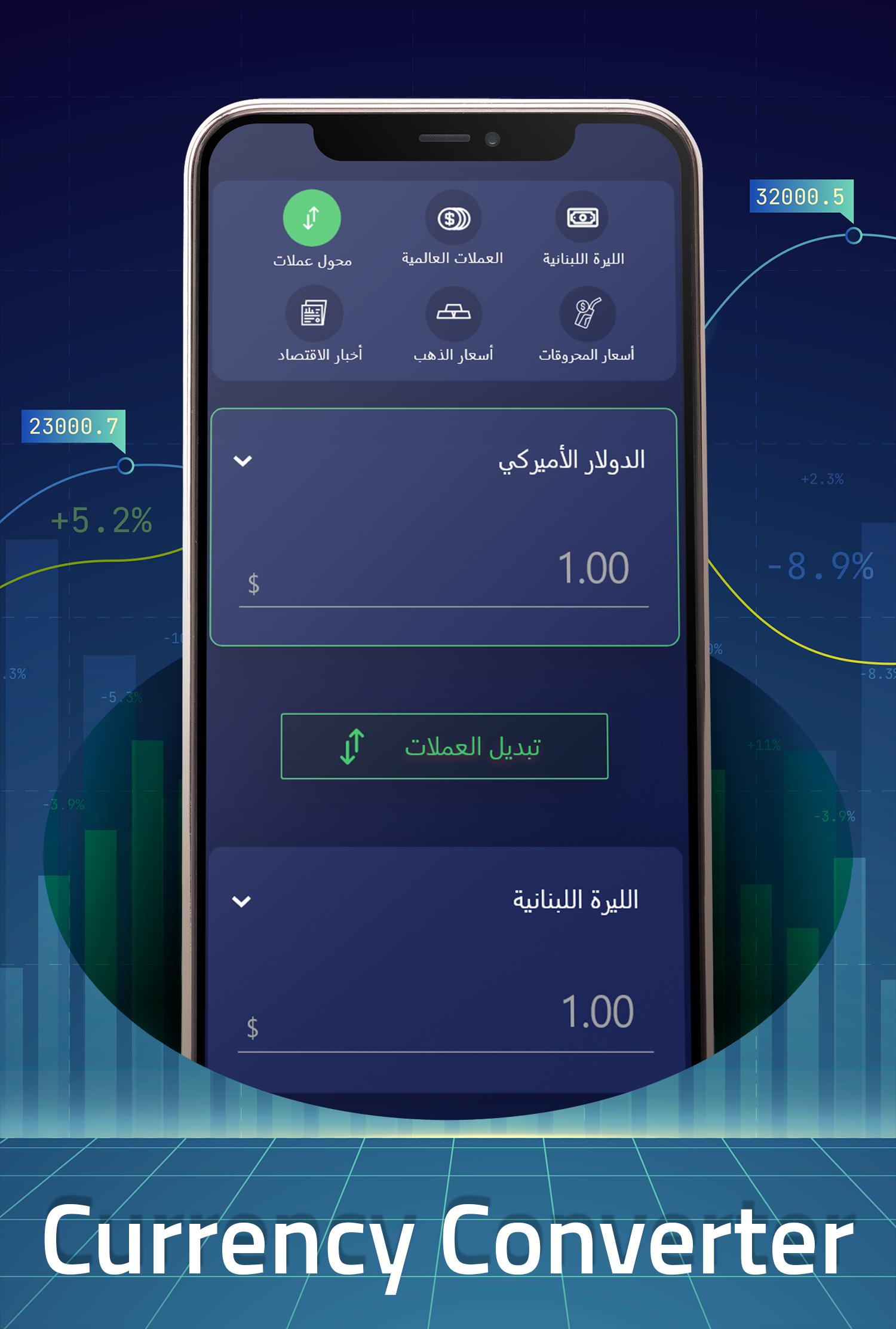 Добавьте доллар, чтобы следить за ценой ливанского фунта и доллара в Ливане, в дополнение к ценам на золото и топливо. Вы можете конвертировать между валютами и видеть предыдущие цены, а также видеть курсы арабских и международных валют и цифровых валют. Вы можете подписаться, чтобы получить платную версию и удалить рекламу.