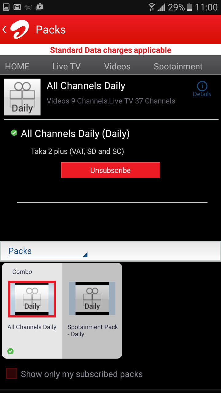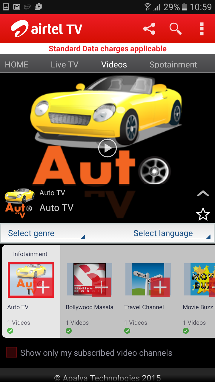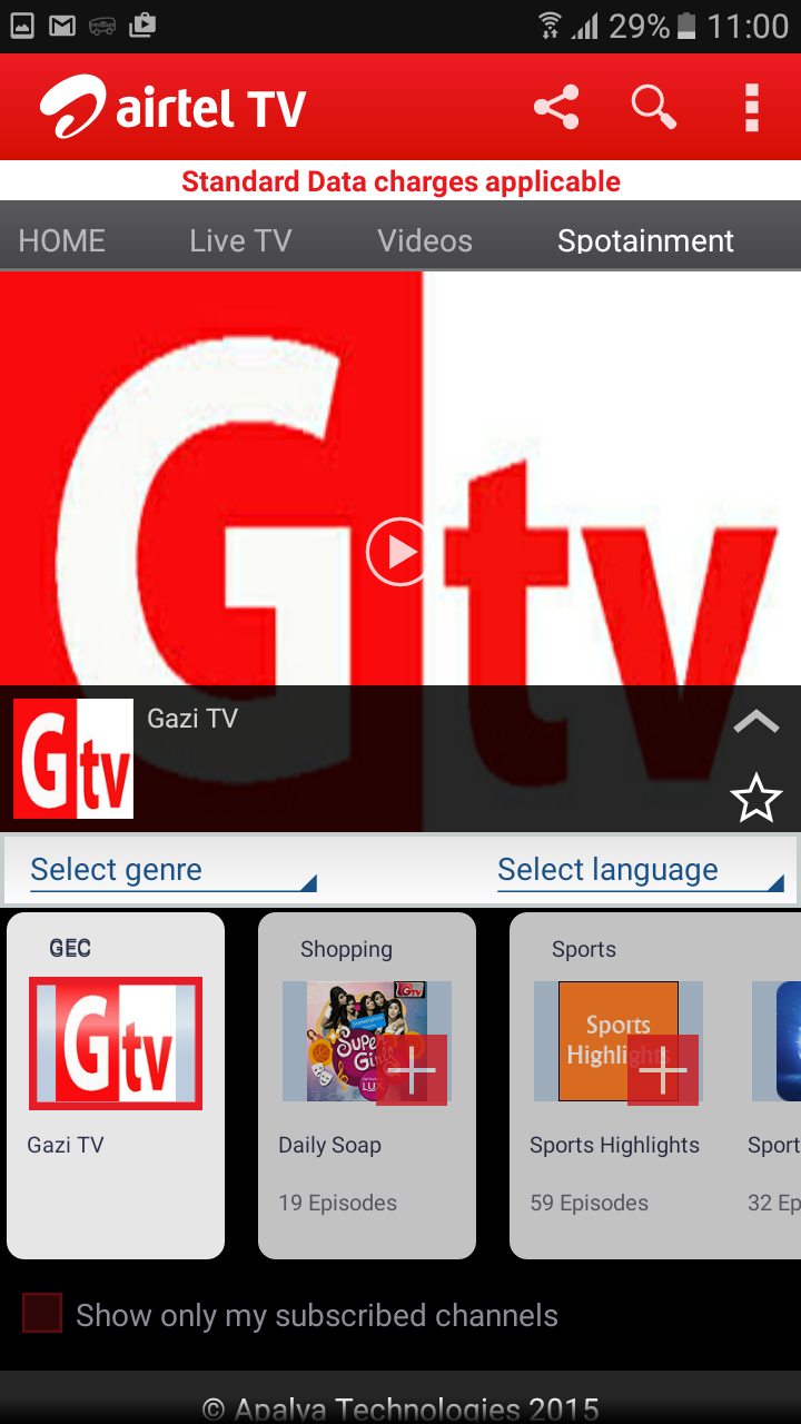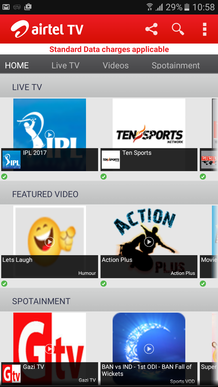 Standard Data Charges applicable while watching Airtel Mobile TV.