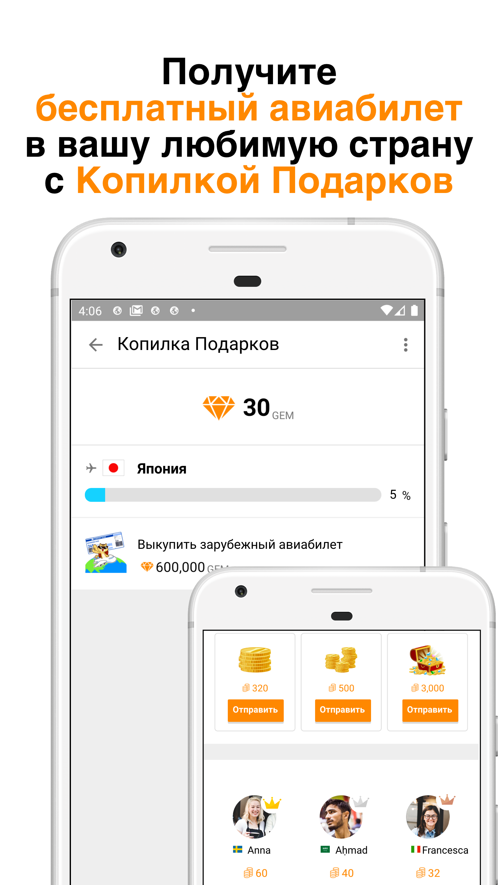- Отправьте интересные Подарки как Сердца и Шкатулки с Сокровищами вашим зарубежным друзьям для развлечения и сближения с ними