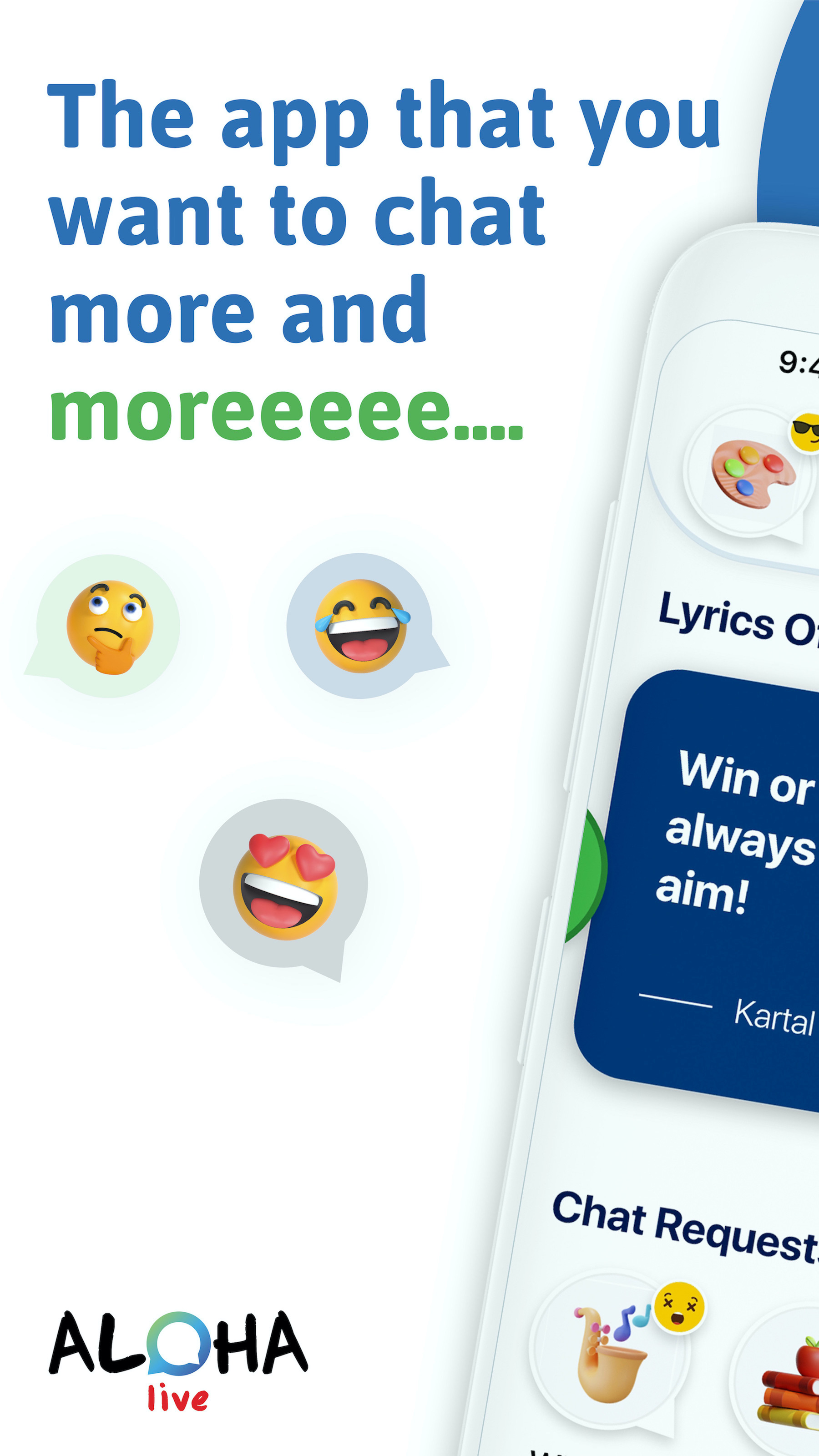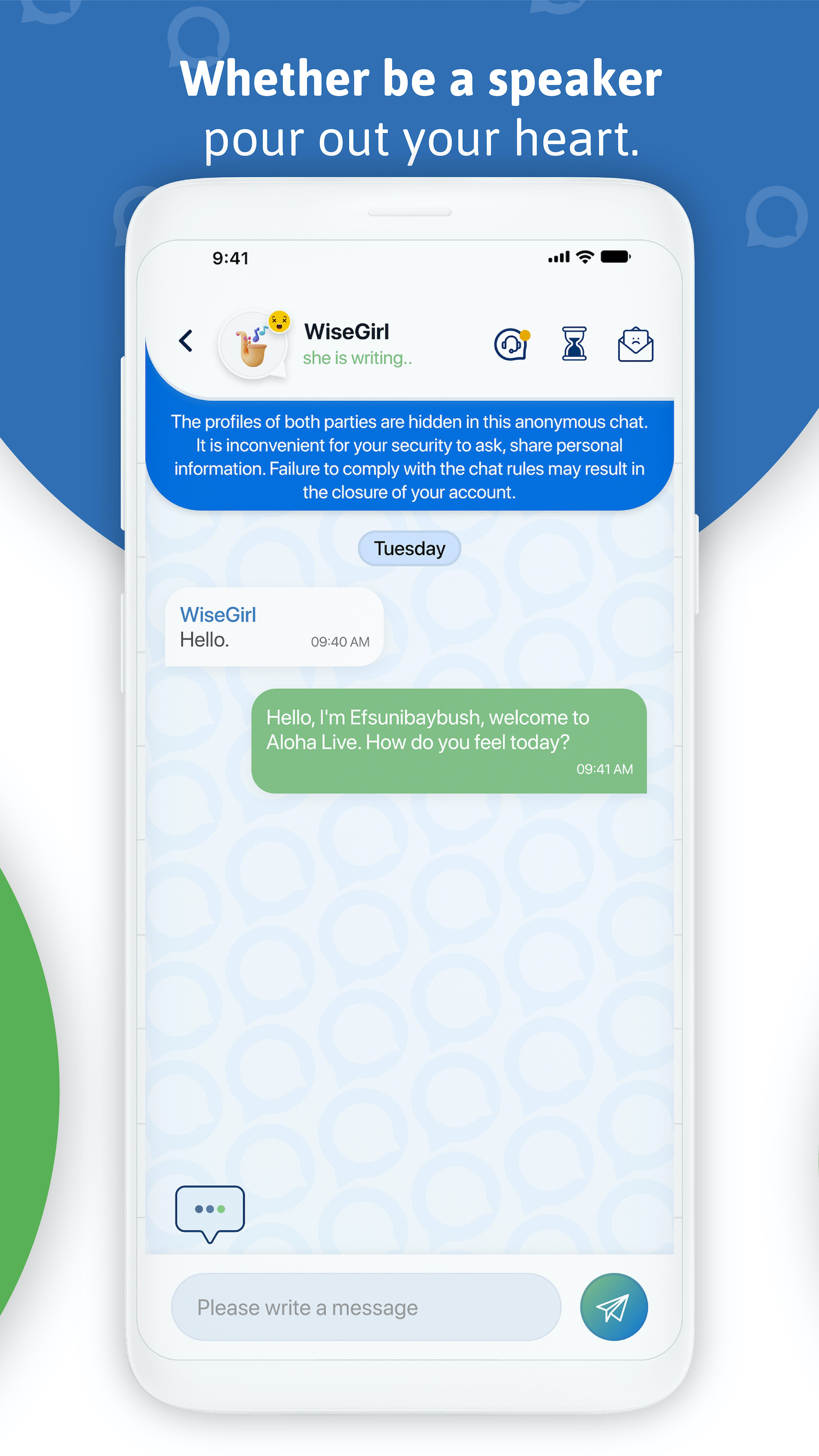Aloha Live App — это лучшее бесплатное приложение для чата и обмена сообщениями, где вы можете встречаться с живыми слушателями на любую тему и общаться в частном порядке, изливать свое сердце, избавляться от одиночества, разговаривать и веселиться в совершенно новом стиле: быстро, весело, бесплатно, live, а приватный чат здесь. Знакомьтесь со случайными незнакомцами и слушателями в Интернете и анонимно общайтесь с незнакомцами случайным образом. Загрузите БЕСПЛАТНО прямо сейчас, чтобы совершенно по-новому познакомиться с социальной сетью. Просто зарегистрируйтесь с «КРЕАТИВНЫМ именем пользователя» и начните общаться в чате. Всего один клик между вами и весельем. ОСОБЕННОСТИ🔥🔥🔥 ☀️Что ты хочешь рассказать о своем возлюбленном, отношениях или браке, своем одиночестве, своих проблемах с друзьями? ☀️Или просто для беседы, скуки, матча с молодыми или взрослыми людьми, вас ждут возможность говорить по-турецки и по-английски, живые слушатели. ☀️Признавайтесь, делитесь секретами, сплетничайте, черпайте идеи, задавайте вопросы. ☀️Вы можете задавать живым слушателям вопросы, которые не можете задать в обычной жизни, и можете анонимно отправлять сообщения о проблемах, с которыми боитесь говорить лицом к лицу. ☀️Расслабьтесь, никакая личная информация не будет запрошена, никакого видеочата, только обмен сообщениями, и ваша личность полностью конфиденциальна. ☀️Скачай Aloha Live, лучшее приложение для анонимного чата для онлайн-развлечений, и легко начни чат в один клик. ☀️Поговорите со случайным человеком или установите свои собственные критерии. ☀️Вы можете добавить своего любимого слушателя в избранное и сделать его своим мобильным виртуальным другом, и вы всегда сможете связаться с ним одним щелчком мыши. ☀️Создавайте комнаты с групповым чатом или чатом один на один, вы босс. ☀️Побалуйте своего мобильного друга виртуальными подарками и продлите общение так долго, как захотите. Как работает приложение Алоха Live🌈 Алоха, Хола, Привет… хотя все они пишутся и произносятся по-разному, значение всегда одно и то же; Привет. Aloha Live — отличное приложение для обмена сообщениями, в котором вы можете общаться в прямом эфире о проблемах, с которыми сталкиваетесь в повседневной жизни. Благодаря легкому в использовании и простому интерфейсу вы можете сразу же начать общаться с людьми, прошедшими практический курс обучения слушателей. Вы также можете быть слушателем, когда захотите. Aloha (используется для приветствия на гавайском языке) — это мобильное чат-приложение, в котором люди могут конфиденциально обсудить проблемы, с которыми они сталкиваются в жизни, с беспристрастным, опытным и образованным слушателем, который не будет осуждать себя в обществе. -Скачать приложение. Вы можете либо войти в систему как спикер, либо пройти обучение для слушателей во время регистрации и стать слушателем. Вы также можете использовать полученные знания, чтобы быть слушателем в повседневной жизни. -Вы можете создать анонимную учетную запись с нужным вам именем пользователя. -Теперь вы готовы к сообщению на Aloha Live. Вы можете поговорить с людьми, которые обучены слушать, сразу же нажав кнопку «Начать чат». Вы можете начать общаться прямо через несколько минут. Для продолжения разговора вы можете предложить своему слушателю чашку чая, кофе или другие вирту