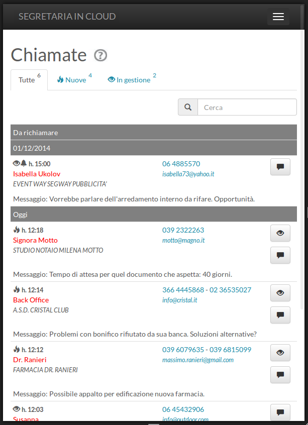 Приложение segretariaincloud.it позволяет вам управлять своим секретариатом прямо с вашего смартфона. Благодаря простому интерфейсу достаточно одного клика, чтобы дистанционно давать указания своему секретарю, и вы можете в любой момент обновить свой статус доступности. Вам сообщат о входящих звонках в режиме реального времени.