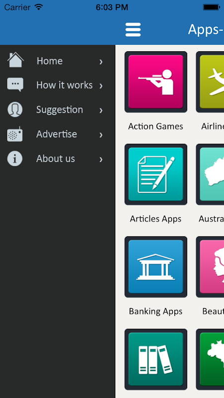 There are currently 100s of categories & still counting. We add new categories every week. Some of the most popular app categories are Education, Gaming, Kids, Health, Business, News, etc.
