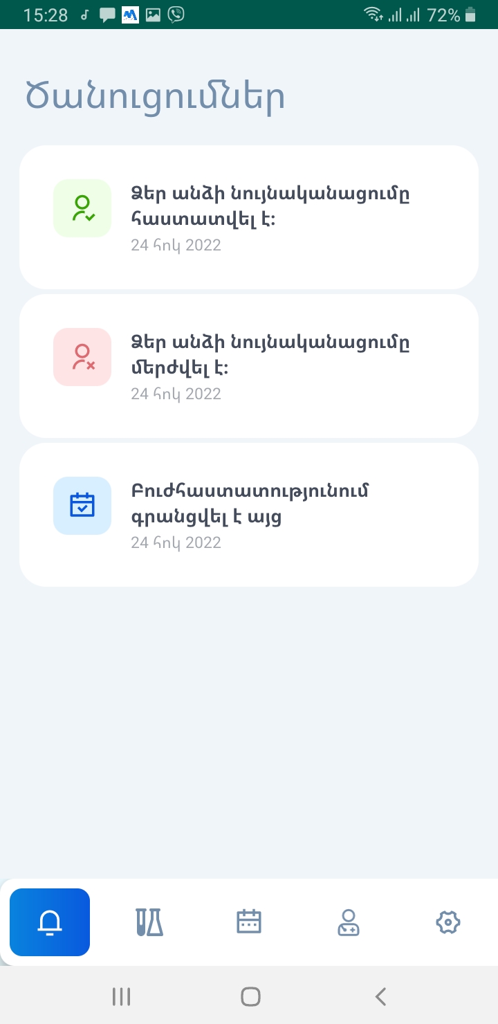 Приложение Armed eHealth интегрировано с Национальной Централизованной Системой Электронного Здравоохранения Армении и направлено на содействие вовлечению пациентов в их медицинские услуги. Текущая версия приложения Armed eHealth позволит вам: 1. Узнать к какому врачу вы прикреплены, 2. Записаться на прием к участковому врачу, одним щелчком мыши, 3. Просмотр тестов на COVID-19 4․ Просмотр сертификата о вакцинации против COVID-19 5. Уведомления 6. Идентификация личности 7. Просмотр посещений после идентификации 8. Просмотр оплаченных посещений, прикрепление карты и оплаты 9. Просмотр медицинских данных 10. Просмотр роственных лиц 11. Просмотр личных данных В последующих версиях появятся новые функции, позволяющие гражданам Армении получить доступ к своим: 1. Планам ухода, 2. Медицинским документам, 3. Диагностическим снимкам и результатам лабораторных тестов, 4. Услуги по пополнению рецептурных лекарств (электронное назначение)