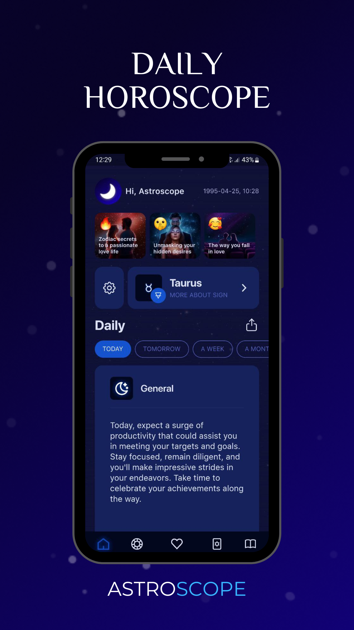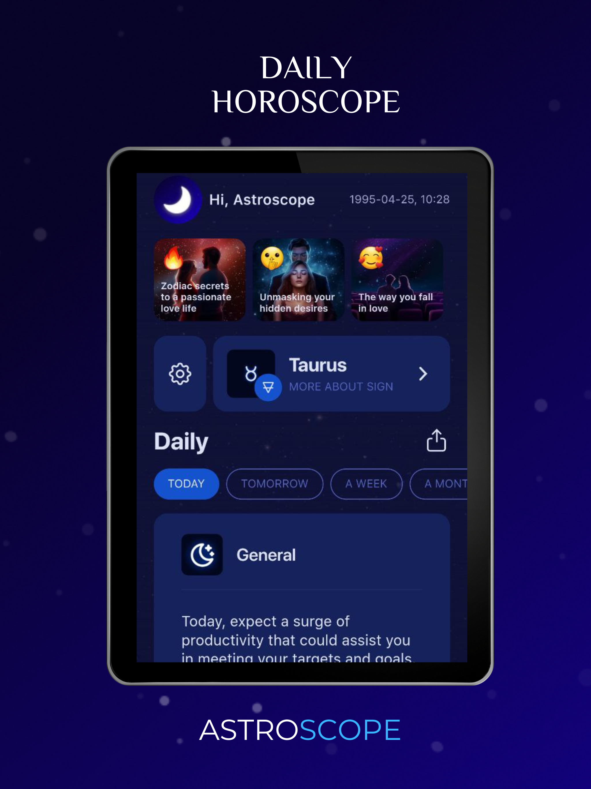 Откройте для себя невероятную силу астрологии с нашим всеобъемлющим мобильным приложением ❤️🔥 Погрузитесь в свой ежедневный гороскоп, измерьте совместимость с вашим партнером, предскажите свое будущее с помощью печенья с предсказаниями и показаний карт Таро и углубитесь в свою карту рождения. Астрология еще никогда не была такой простой и доступной! 💫 НАШИ ОСОБЕННОСТИ: • Гороскопы AI (Общие, Любовь, Работа, Здоровье, Социальная жизнь, Личностный рост, Эмоции, Удача) Astroscope предлагает вам точные и персонализированные гороскопы, составленные передовым искусственным интеллектом для каждого аспекта вашей жизни и каждого знака зодиака — Овна, Тельца, Близнецов, Рака, Льва, Девы, Весов, Скорпиона, Стрельца, Козерога, Водолея и Рыб. Будьте впереди своего дня, недели, месяца или года с нашими проницательными прогнозами. • Совместимость (Общие, Сильные стороны, Слабые стороны, Брак, Работа, Доверие, Секс, Дружба, Диалог) Узнайте, как ваш знак зодиака соответствует другим во всех аспектах жизни. Наша многогранная функция совместимости раскрывает секреты ваших отношений, будь то любовь, дружба или профессиональные связи. • Статьи Наши профессионально подготовленные статьи охватывают широкий спектр астрологических тем. Получите более глубокое понимание мистического мира знаков зодиака, движения планет и астрологии. • Аффирмации и вдохновение Поднимите себе настроение с помощью ежедневных аффирмаций и вдохновения, призванных помочь вам сохранить позитивный настрой и достичь своих целей. • Совет дня Получайте ежедневные астрологические советы, которые помогут вам принимать обоснованные решения в личной и профессиональной жизни. • Чтения Таро (Ежедневные Таро и Таро Да/Нет) Получите руководство от карт с нашими ежедневными функциями Таро и Таро Да/Нет. Раскройте скрытые аспекты своей жизни и найдите ответы, которые ищете. • Печенье удачи Получите ежедневную дозу мудрости с нашим цифровым печеньем с предсказанием. Откройте его и посмотрите, что приготовила для вас Вселенная сегодня! • Чтение за чашкой кофе Исследуйте древнюю традицию чтения кофейной чашки и раскройте символы и значения, скрытые в основании. • Знаменитости с вашим знаком Узнайте, кто из знаменитостей совпадает с вашим знаком зодиака, и узнайте, как звезды повлияли на их жизнь. Загрузите Astroscope сегодня и начните свое путешествие в увлекательный мир астрологии!
