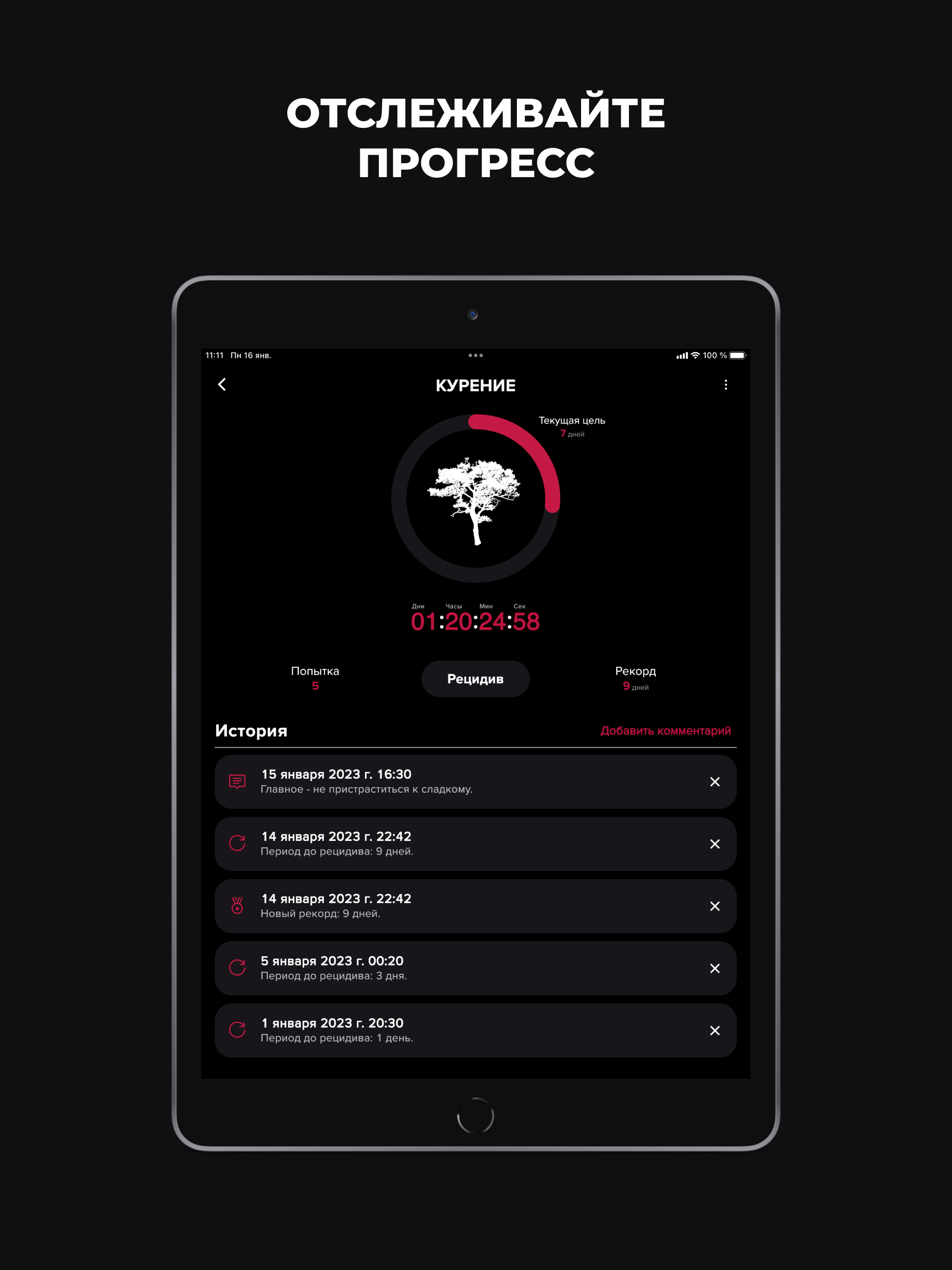 Если вы ищете приложение, которое поможет вам избавиться от алкогольной, никотиновой, кофеиновой или игровой зависимости, то это приложение именно для вас. Данное приложение, это не просто трекер привычек, это ваш надежный партнер, который будет сопровождать вас на протяжении всего пути самосовершенствования. Он даст вам возможность вести историю, в которую вы сможете добавлять записи об ощущениях, мыслях, событиях и рецидивах, а также видеть личные рекорды. Этот трэкер привычек будет постоянно ставить перед вами новые цели и поможет вам полностью контролировать процесс избавления от зависимостей и вредных привычек. Пора вернуть контроль над своей жизнью и остановить то зависимое поведения, которое удерживает вас от здоровой и счастливой жизни. Основные функции: - Идеально подходящий для ежедневного использования. - Подходит для всех видов зависимостей и вредных привычек, таких как курение, алкоголизм, порнография и компьютерные игры. - Возможность отслеживания неограниченного количества привычек. - Таймер обратного отсчета, который отображает время (количество дней, часов, минут и секунд), прошедшее без вредной привычки. - Отображение подробной истории для статистики и глубокого анализа, а также лучшего понимания ваших поведенческих моделей. - Функция добавлять заметки для фиксации ваших чувств и мыслей. - Отображение количества попыток для отслеживания вашего прогресса. - Личные рекорды, которые мотивируют вас выходить из зоны комфорта. - Постоянно обновляемые цели для непрерывного движения вперед. - Настройка каждой привычки в соответствии с вашими потребностями. - Полезный контент, который поможет вам на пути отказа от плохих привычек и преодоления зависимостей. - Переключение между светлой и темной темой в соответствии с вашими предпочтениями. - Многоязычная поддержка, делающая его доступным и позволяющая налаживать жизнь людям по всему миру. - Минималистичный дизайн, обеспечивающий простоту навигации. - Абсолютно бесплатное, потому что мы верим в доступность и равенство в самосовершенствовании. Шагните в свою новую жизнь и скажите прощай плохим привычкам и зависимостям. С Bad Habit Break здоровая и счастливая жизнь - это всего лишь приложение. Желаем удачи!