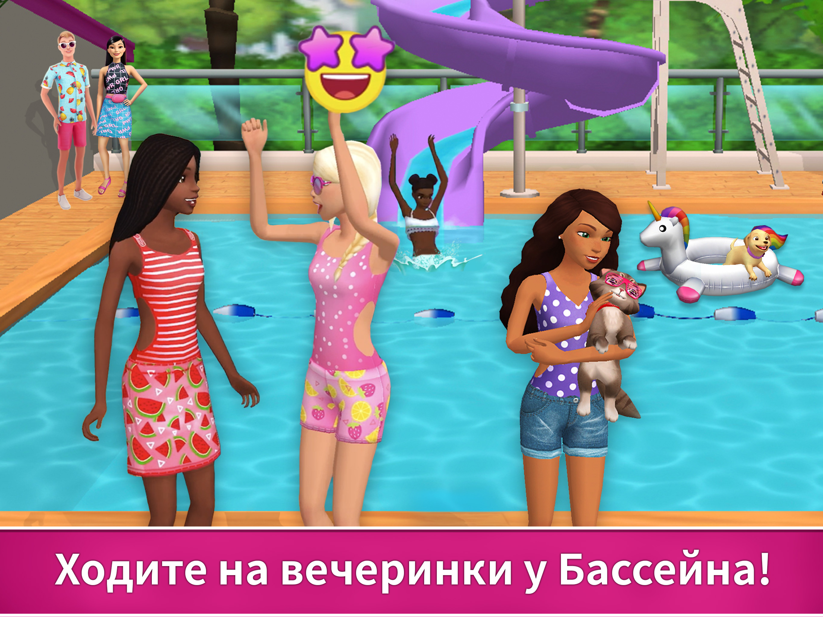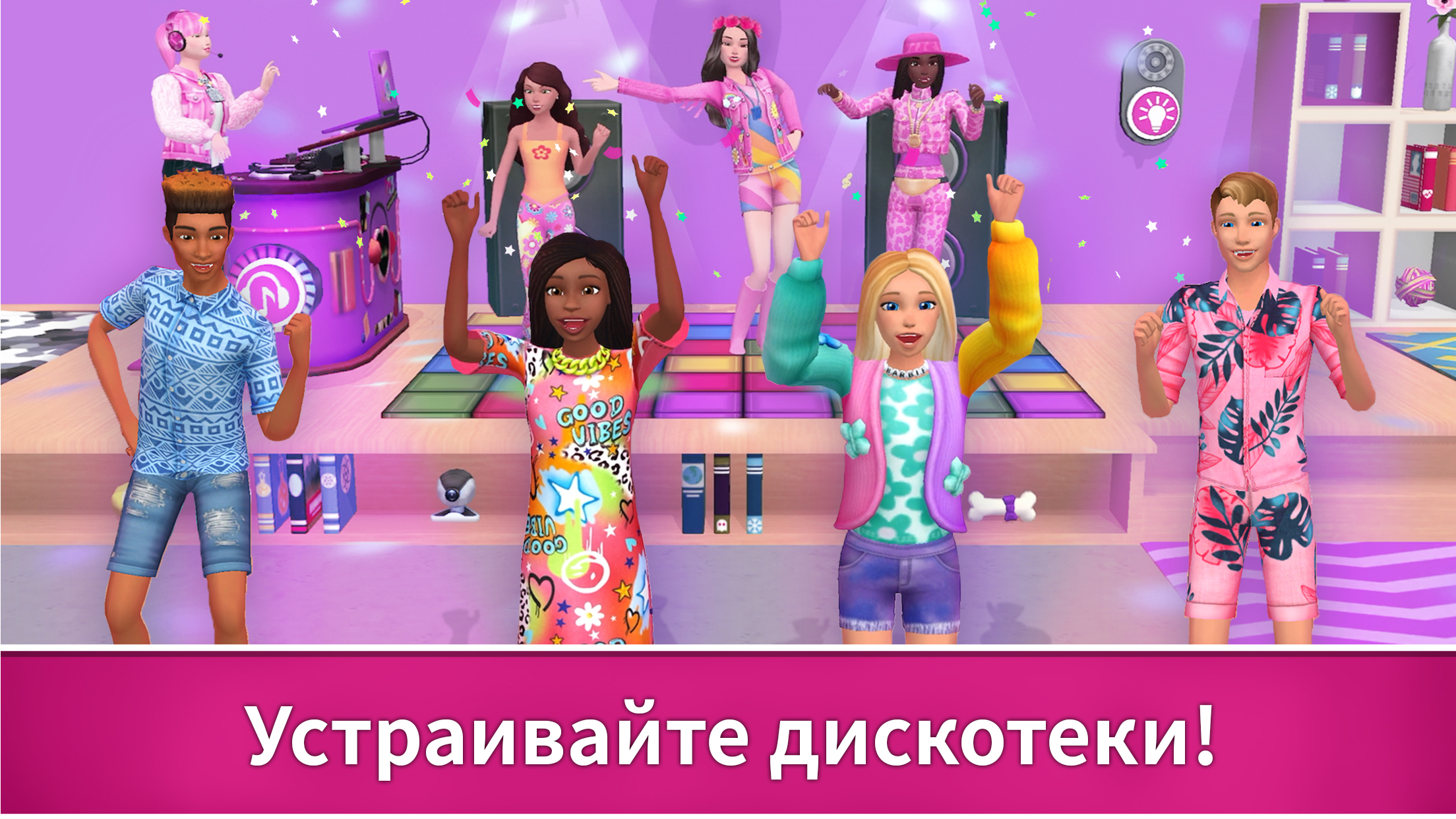 Создайте свой дом мечты для Барби! Украсьте и измените все комнаты. Познакомьтесь с моими лучшими друзьями, с щенками и Блиссой! Присоединяйтесь к нам: в доме мечты столько веселых дел! Мы будем печь пироги, танцевать и устраивать невероятные вечеринки у бассейна! Путешествуйте по Малибу в моем розовом кабриолете: в городе нас ждет множество развлечений!