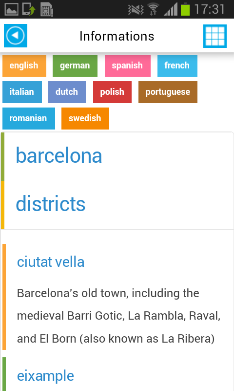 - Многоязычной информации о городе транспорт, питание, история, аэропорты и многие другие, как информация таблицу Clima или съесть и события (Offline)