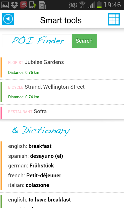 - Mutilingual интерфейса и описания лучшим способом для изучения достопримечательностей города.