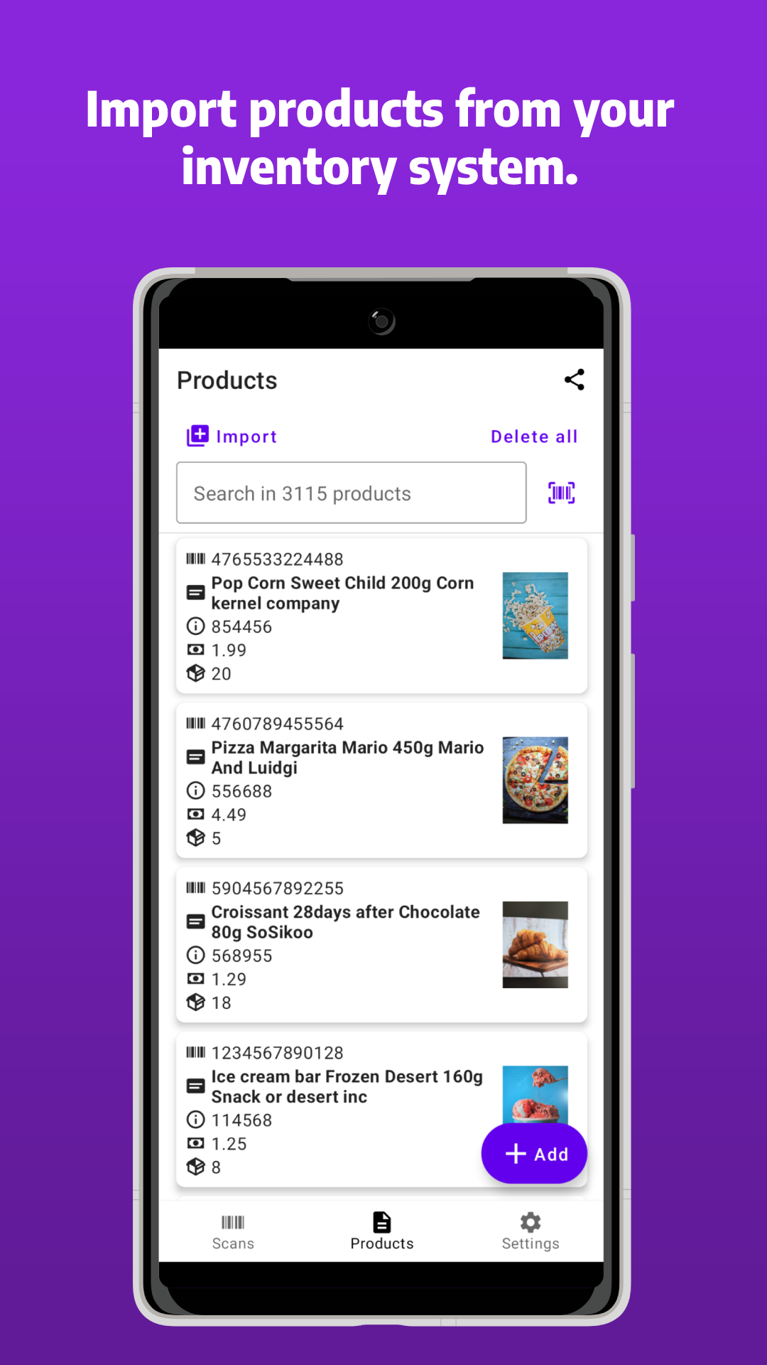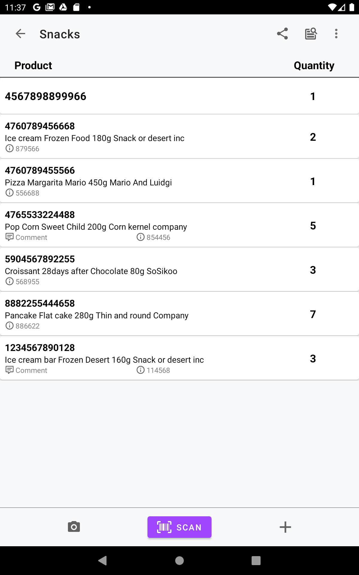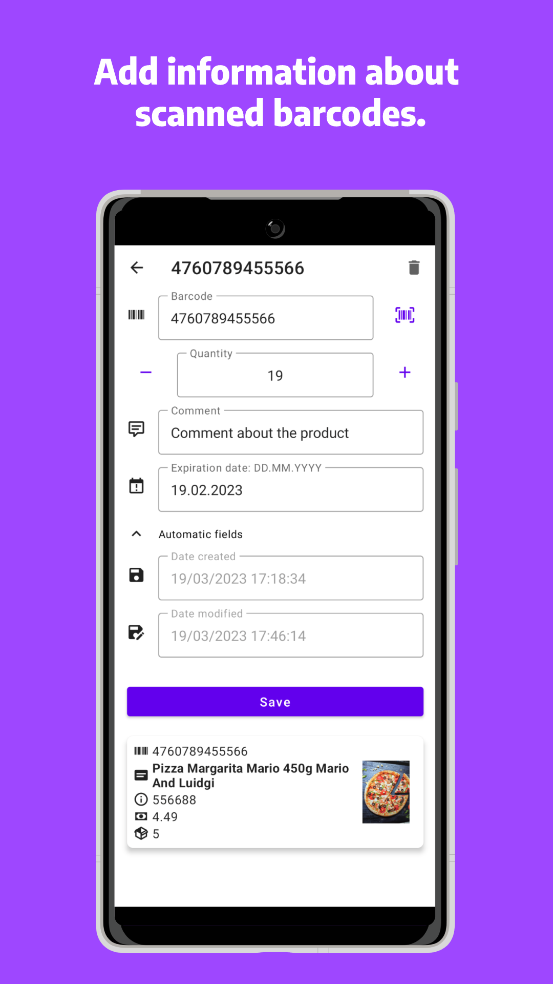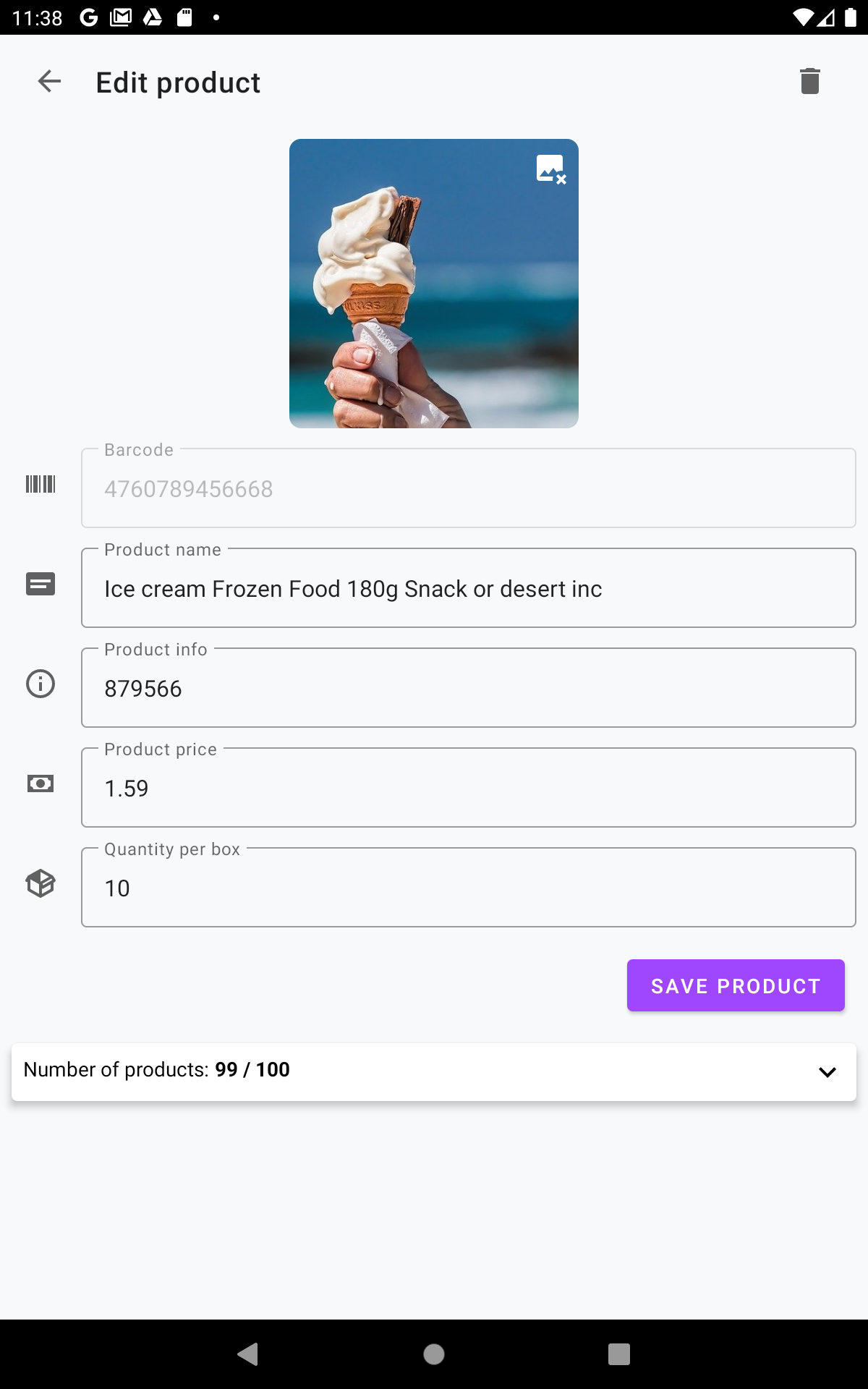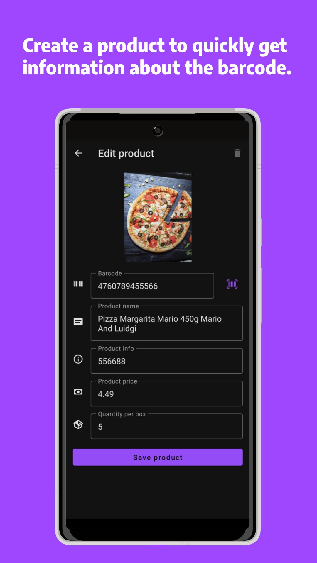 2. Для каждого штрих-кода вы можете создать продукт указав его название, цену, изображение и другие данные. И всякий раз при сканировании этого штрих-кода данные из продукта будут вам показаны.