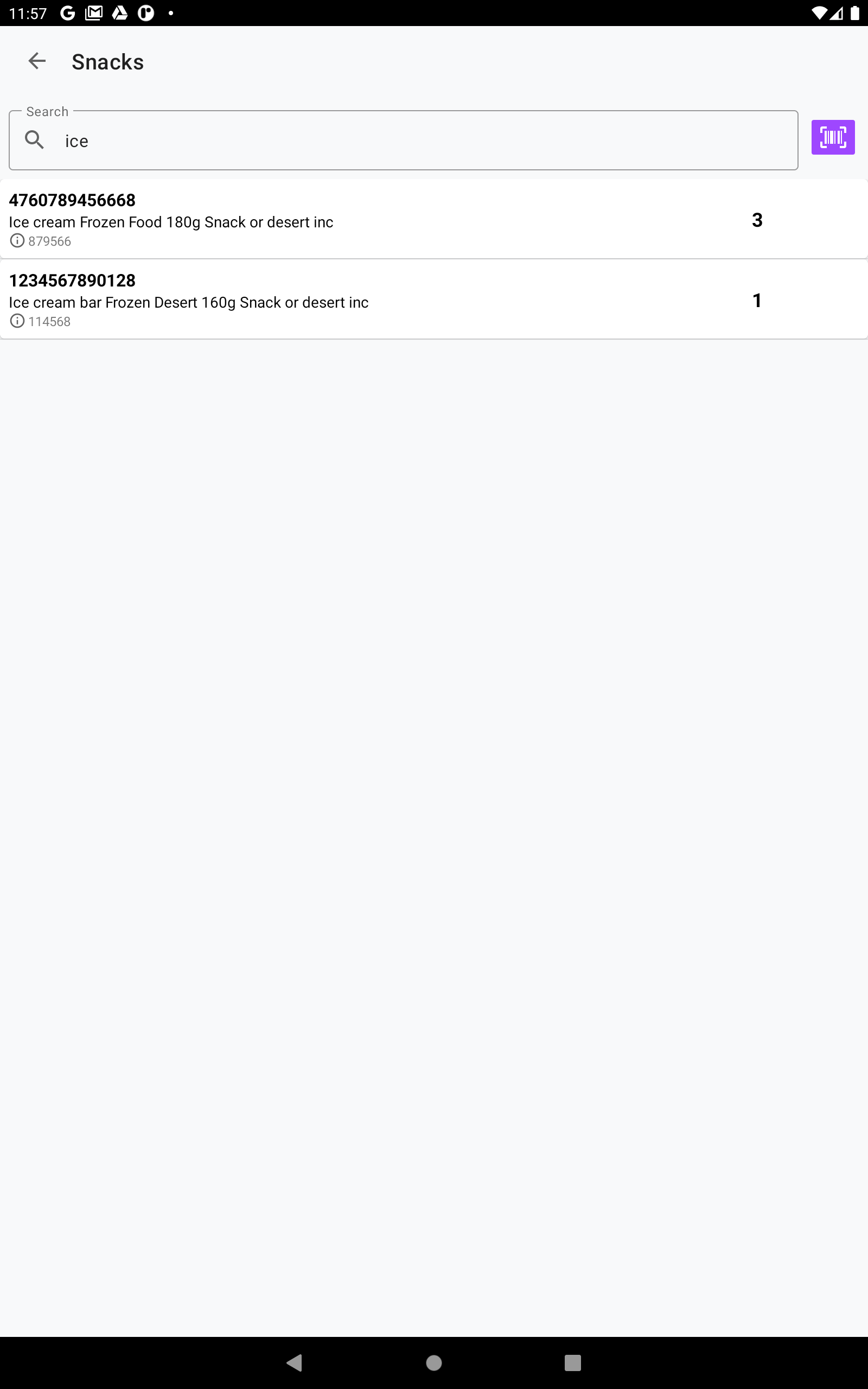 1. В приложении есть два типа сканнеров штрих-кода. Первый это сканер, который отображается на экране все время. Главный его плюс, это скорость, потому как вам не нужно тратить время на открытие камеры. Второй сканер – открывается по клику, его стоит использовать чтобы сократить потребления батареи или же если вы не торопитесь.